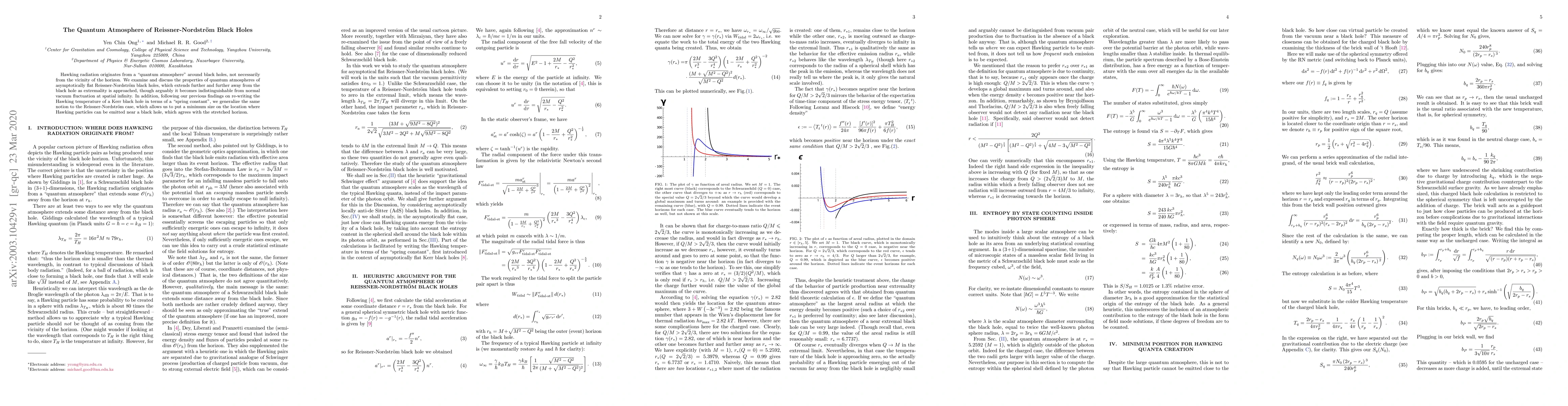 Hawking radiation originates from a "quantum atmosphere" around black holes, not necessarily from the vicinity of the horizon. We examine and discuss the properties of quantum atmospheres of asymptotically flat Reissner-Nordstr\"om black holes, which extends further and further away from the black hole as extremality is approached, though arguably it becomes indistinguishable from normal vacuum fluctuation at spatial infinity. In addition, following our previous findings on re-writing the Hawking temperature of a Kerr black hole in terms of a "spring constant", we generalize the same notion to the Reissner-Nordstr\"om case, which allows us to put a minimum size on the location where Hawking particles can be emitted near a black hole, which agrees with the stretched horizon.