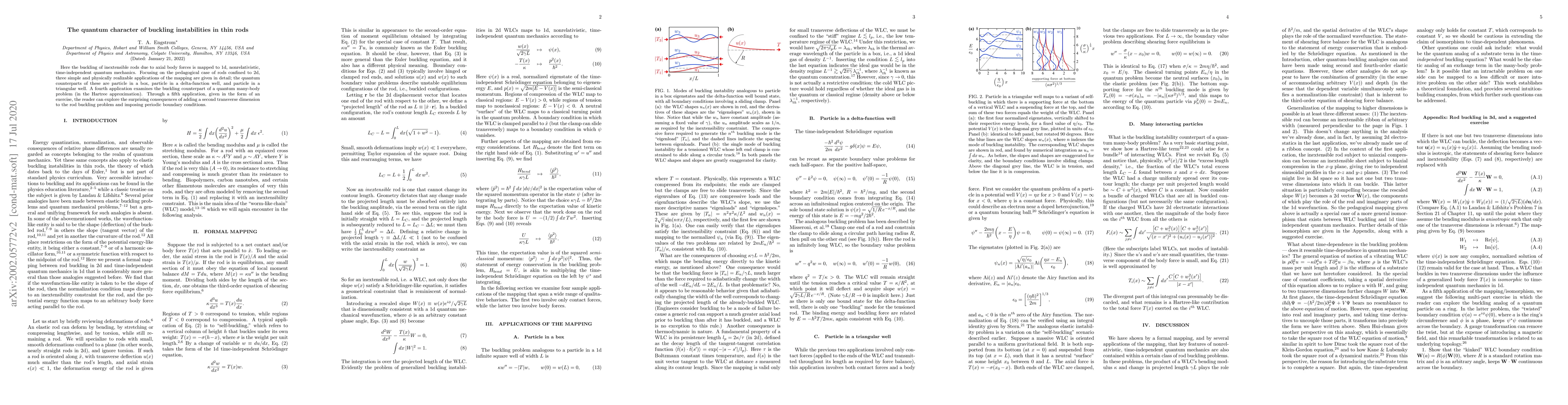 This paper explores the quantum analogy of buckling instabilities in thin rods subjected to axial forces, mapping them to various quantum mechanical systems like a particle in a box and a delta-function well, and examines the implications of adding a second transverse dimension and periodic boundary conditions.