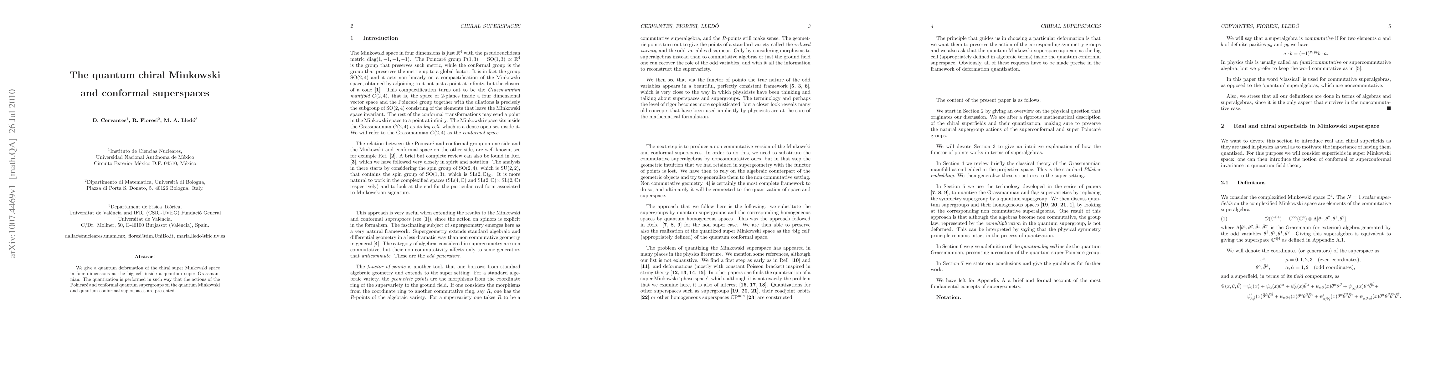 This research provides a new understanding of the quantum chiral Minkowski space and its relation to conformal superspaces, which has potential implications for quantum field theory and string theory.