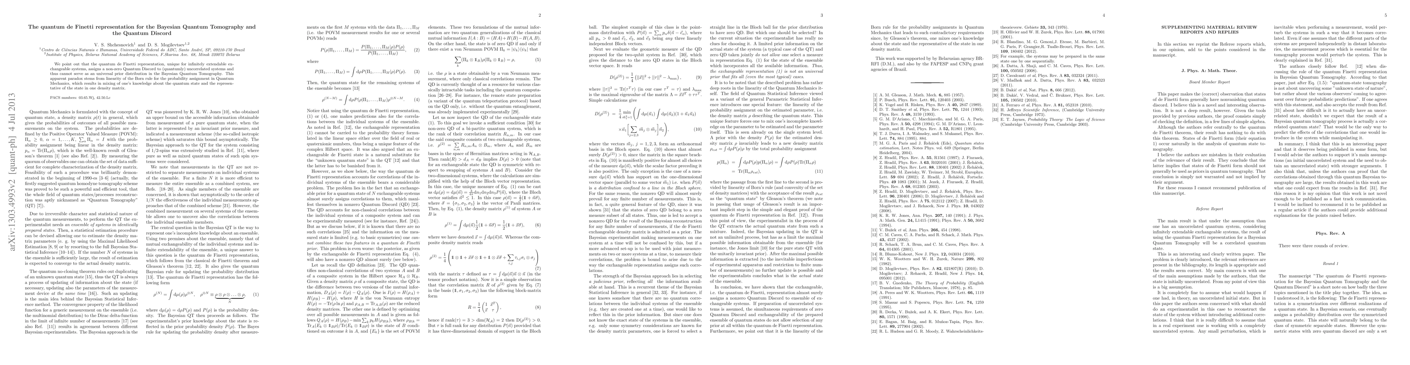 The quantum de Finetti representation, unique for infinitely extendable exchangeable systems, assigns non-zero Quantum Discord to uncorrelated systems, precluding its use as a universal prior in Bayesian Quantum Tomography. This paradox arises from the linearity of the Born rule in Quantum Mechanics.