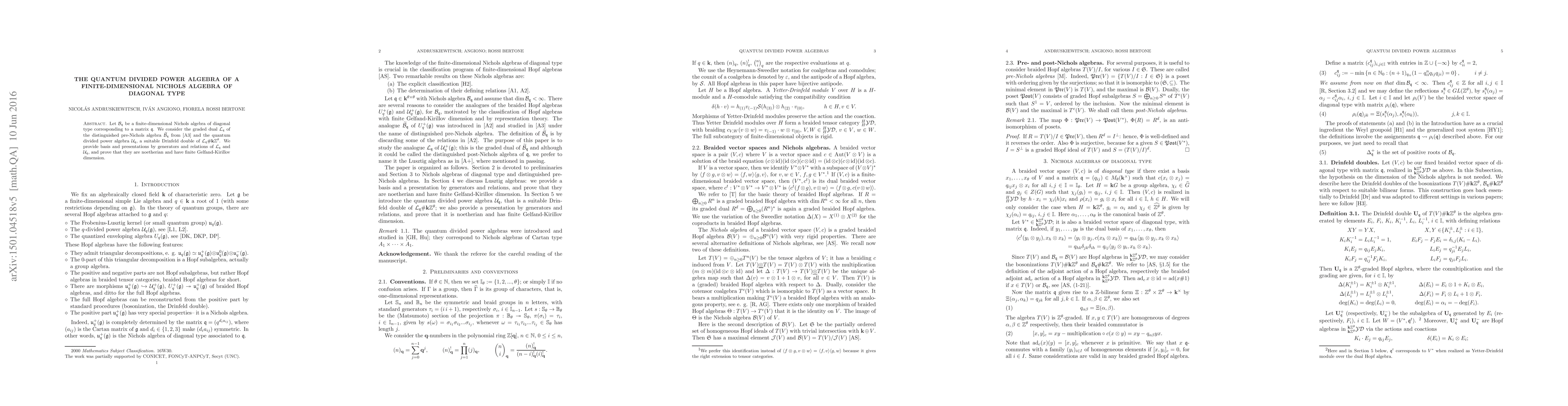 Let $\mathcal{B}_\mathfrak{q}$ be a finite-dimensional Nichols algebra of diagonal type corresponding to a matrix $\mathfrak{q}$. We consider the graded dual $\mathcal{L}_{\mathfrak{q}}$ of the distinguished pre-Nichols algebra $\widetilde{\mathcal{B}}_{\mathfrak{q}}$ from [A3] and the divided powers algebra $\mathcal{U}_{\mathfrak{q}}$, a suitable Drinfeld double of $\mathcal{L}_{\mathfrak{q}} # \mathbf{k} \mathbb{Z}^{\theta}$. We provide basis and presentations by generators and relations of $\mathcal{L}_{\mathfrak{q}}$ and $\mathcal{U}_{\mathfrak{q}}$, and prove that they are noetherian and have finite Gelfand-Kirillov dimension.