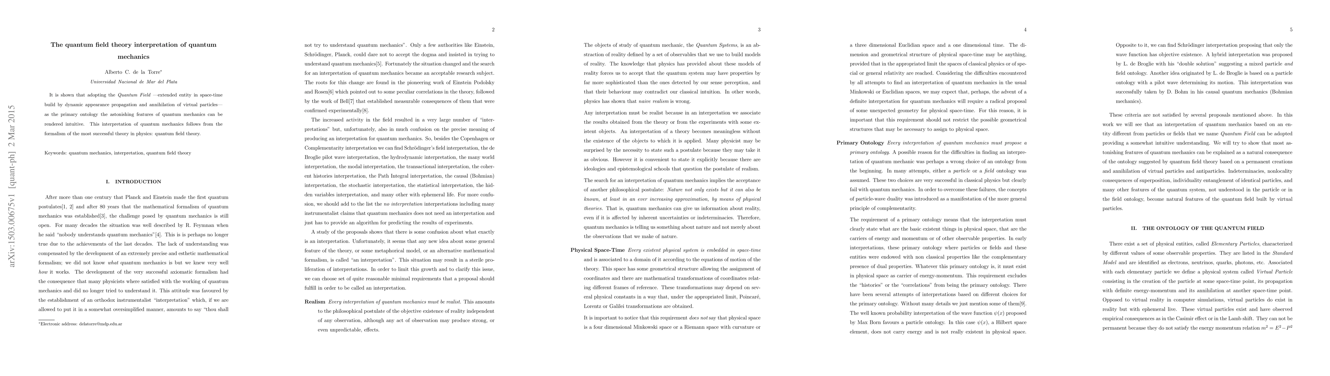 Summary: This paper proposes that quantum mechanics can be intuitively understood by interpreting it through the framework of quantum field theory, where dynamic virtual particles form an extended entity in space-time, providing a coherent ontology for quantum phenomena.