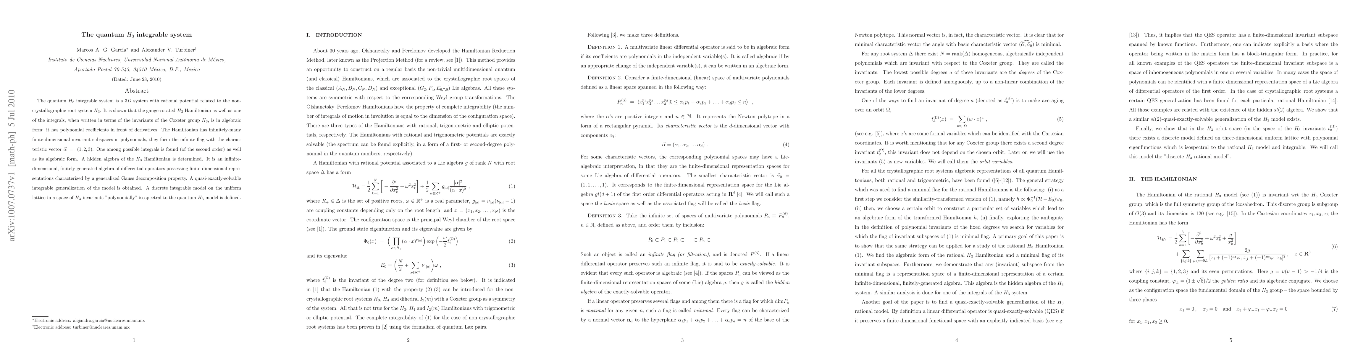 The quantum H3 integrable system is a 3D system with rational potential that can be expressed in algebraic form using the invariants of the Coxeter group H3, revealing new insights into its properties and underlying structure.