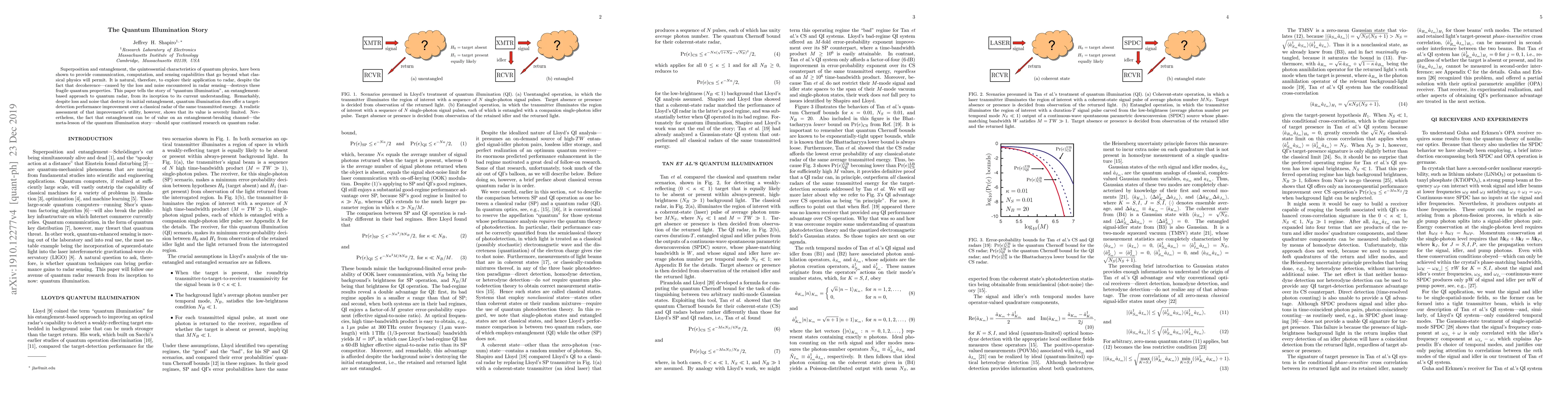 This paper chronicles the development of "quantum illumination," an entanglement-based method for quantum radar, highlighting its potential for improved target detection despite decoherence. While its practical advantages over classical radar are limited, the concept encourages ongoing research into quantum radar.