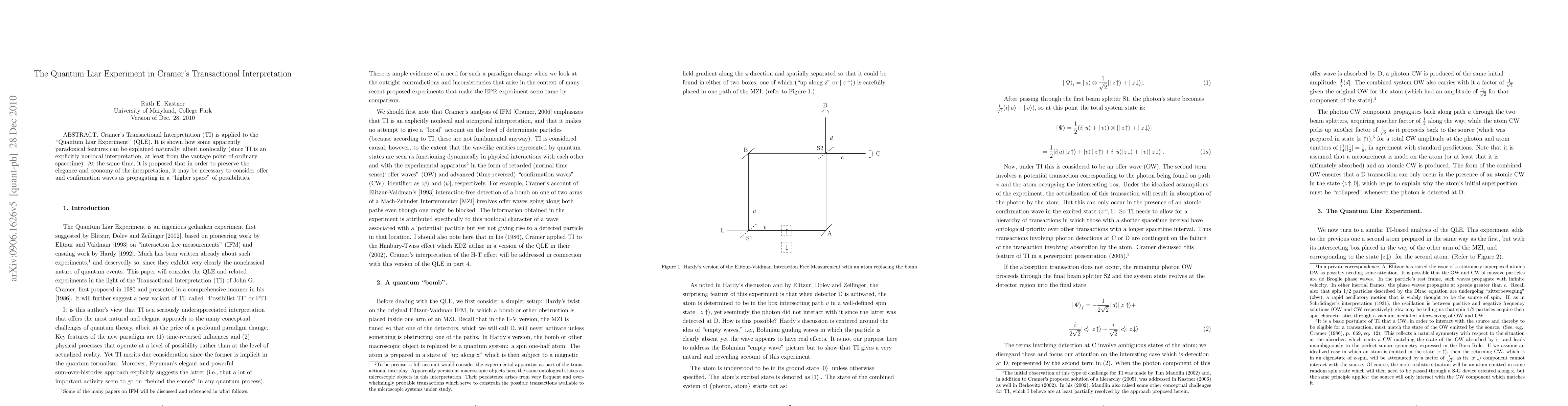 Summary: Cramer's Transactional Interpretation is used to explain the Quantum Liar Experiment, resolving its paradoxical features through nonlocal interactions, suggesting that offer and confirmation waves operate in a "higher space" to maintain the interpretation's elegance.