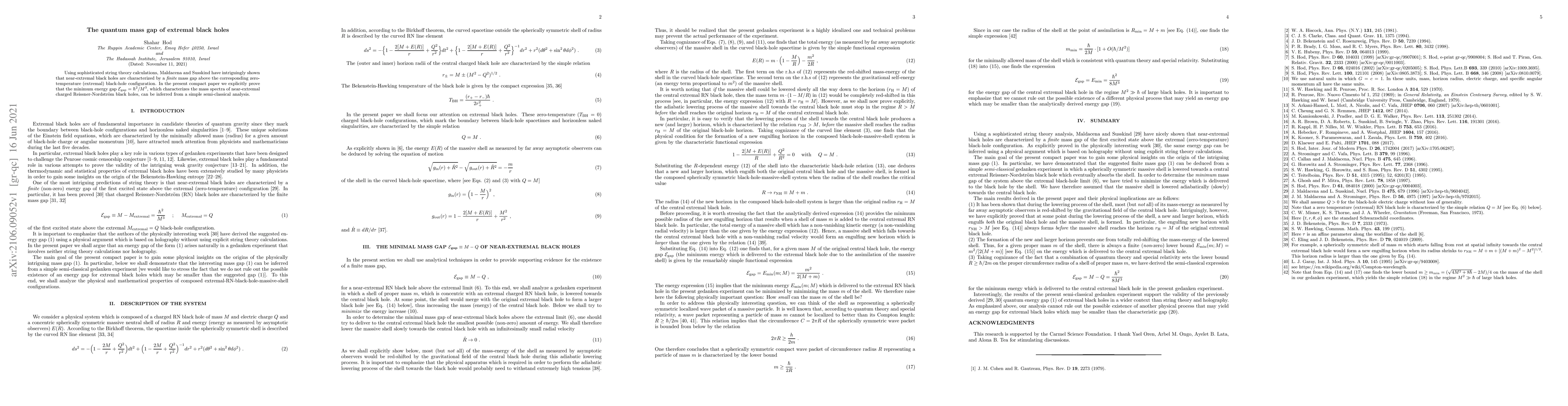 Researchers prove that near-extremal black holes have a minimum energy gap that can be calculated using simple semi-classical analysis, providing insight into the mass spectra of charged Reissner-Nordstr"om black holes.