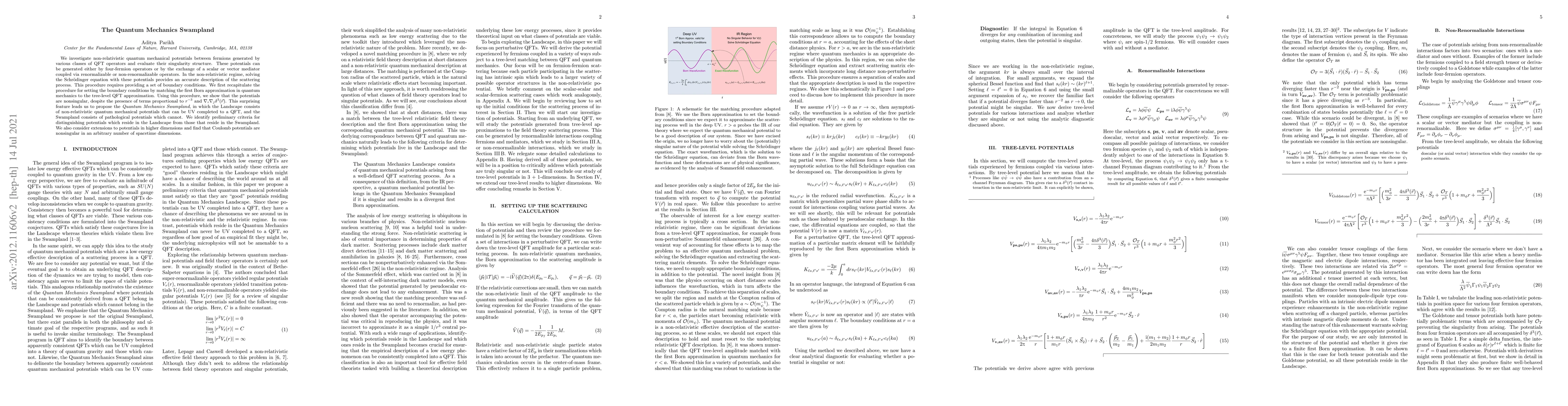 We investigate non-relativistic quantum mechanical potentials between fermions generated by various classes of QFT operators and evaluate their singularity structure. These potentials can be generated either by four-fermion operators or by the exchange of a scalar or vector mediator coupled via renormalizable or non-renormalizable operators. In the non-relativistic regime, solving the Schr\"odinger equation with these potentials provides an accurate description of the scattering process. This procedure requires providing a set of boundary conditions. We first recapitulate the procedure for setting the boundary conditions by matching the first Born approximation in quantum mechanics to the tree-level QFT approximation. Using this procedure, we show that the potentials are nonsingular, despite the presence of terms proportional to $r^{-3}$ and $\nabla_{i}\nabla_{j}\delta^{3}(\vec{r})$. This surprising feature leads us to propose the \emph{Quantum Mechanics Swampland}, in which the Landscape consists of non-relativistic quantum mechanical potentials that can be UV completed to a QFT, and the Swampland consists of pathological potentials which cannot. We identify preliminary criteria for distinguishing potentials which reside in the Landscape from those that reside in the Swampland. We also consider extensions to potentials in higher dimensions and find that Coulomb potentials are nonsingular in an arbitrary number of spacetime dimensions.