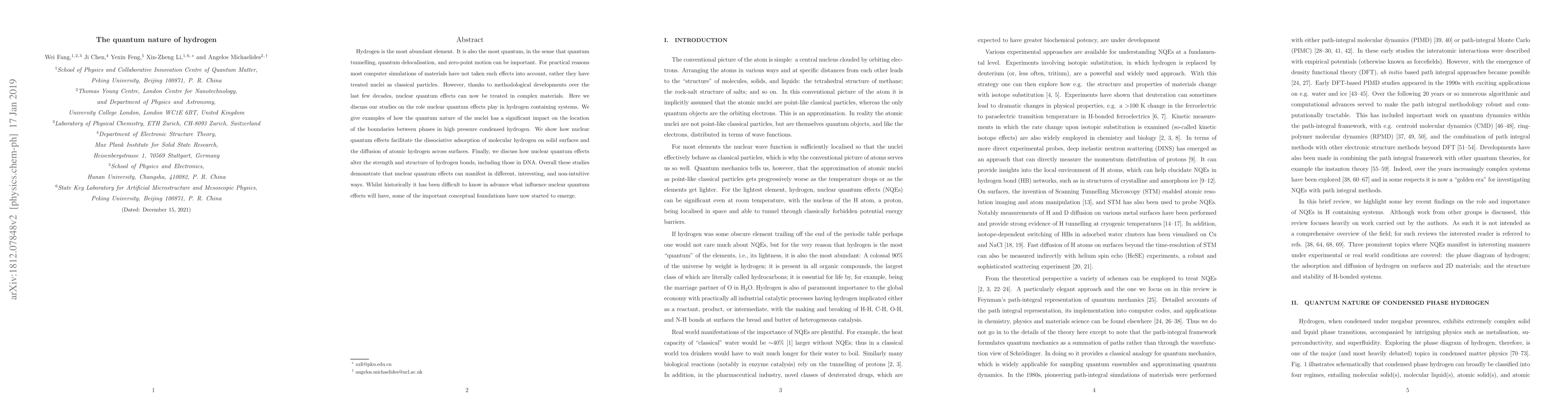 Hydrogen is the most abundant element in the universe. It is also the lightest and as such the most quantum of the elements, in the sense that quantum tunnelling, quantum delocalisation, and zero-point motion can be important. For practical reasons most computer simulations of materials have not taken such effects into account, rather they have treated atomic nuclei as classical point-like particles. However, it is an exciting time for the theory and simulation of materials and thanks to significant methodological developments over the last few decades, nuclear quantum effects can now be accurately treated in complex materials. In this brief review we discuss our recent studies on the role nuclear quantum effects play in hydrogen containing systems. We give examples of how the quantum nature of the nuclei has a significant impact on the location of the boundaries between phases in high pressure condensed hydrogen, including a dramatic lowering of the solid to liquid melting line. We show how nuclear quantum effects facilitate the dissociative adsorption of molecular hydrogen on solid surfaces and the diffusion of atomic hydrogen across surfaces; effects that are of relevance to the catalytic performance of the surfaces. Finally, we discuss how nuclear quantum effects alter the strength and structure of hydrogen bonds, including the hydrogen bonds in DNA. Overall these studies demonstrate that nuclear quantum effects can manifest in many different, interesting, and at times non-intuitive ways. Whilst historically it has been difficult to know in advance what influence nuclear quantum effects will have, some of the important conceptual foundations have now started to emerge.
