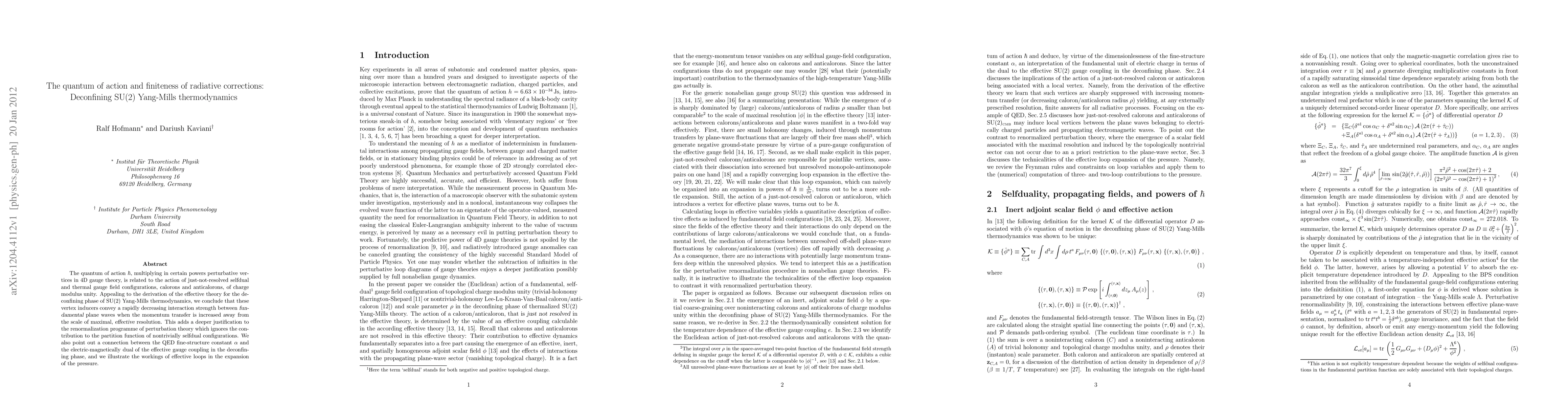 The quantum of action $\hbar$, multiplying in certain powers perturbative vertices in 4D gauge theory, is related to the action of just-not-resolved selfdual and thermal gauge field configurations, calorons and anticalorons, of charge modulus unity. Appealing to the derivation of the effective theory for the deconfining phase of SU(2) Yang-Mills thermodynamics, we conclude that these vertex inducers convey a rapidly decreasing interaction strength between {\sl fundamental} plane waves when the momentum transfer is increased away from the scale of maximal, {\sl effective} resolution. This adds a deeper justification to the renormalization programme of perturbation theory which ignores the contribution to the partition function of nontrivially selfdual configurations. We also point out a connection between the QED fine-structure constant $\alpha$ and the electric-magnetically dual of the effective gauge coupling in the deconfining phase, and we illustrate the workings of effective loops in the expansion of the pressure.