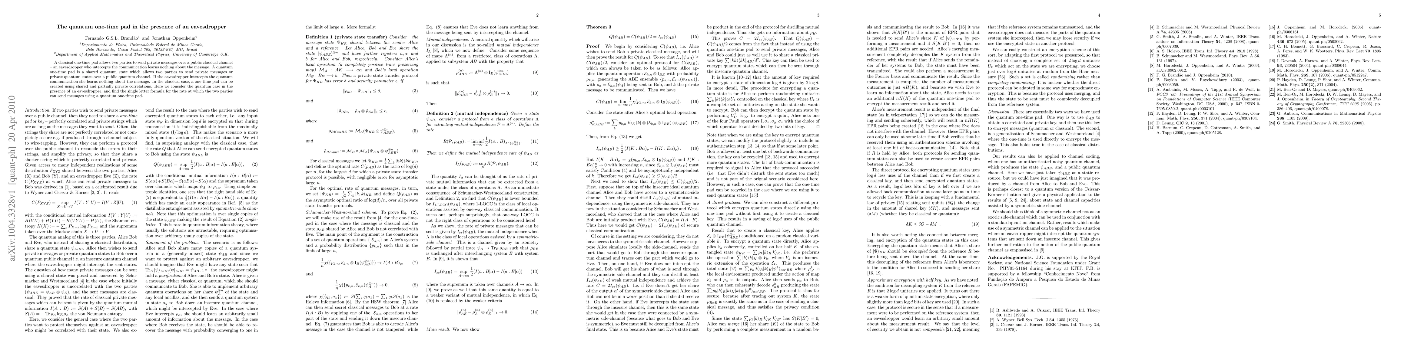 This paper investigates the quantum one-time pad, a method for secure communication using quantum states, and determines the optimal rate at which two parties can transmit private messages over a public quantum channel without the eavesdropper gaining any information.