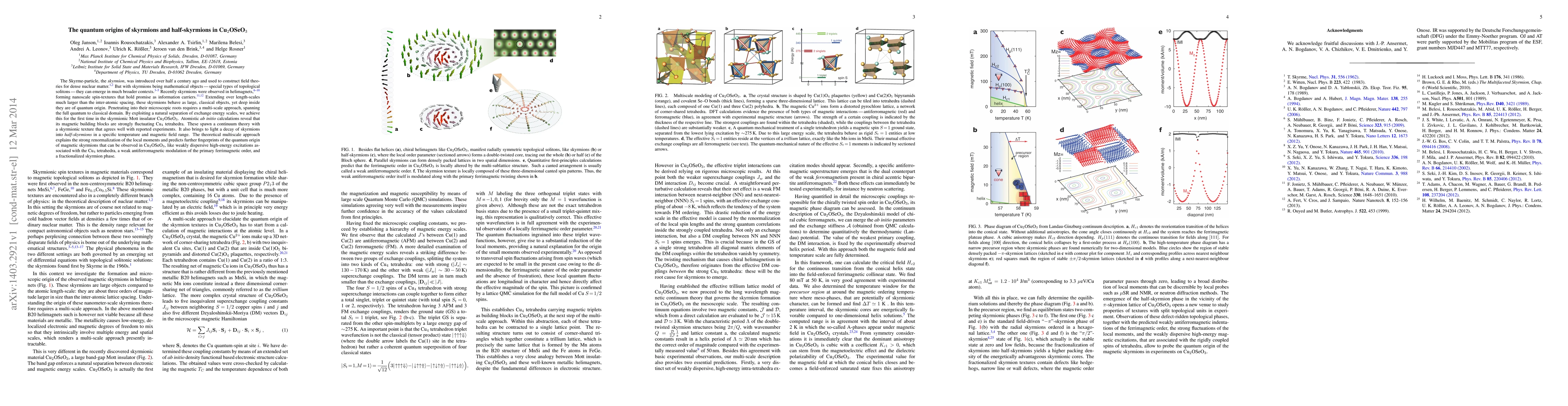 The Skyrme-particle, the $skyrmion$, was introduced over half a century ago and used to construct field theories for dense nuclear matter. But with skyrmions being mathematical objects - special types of topological solitons - they can emerge in much broader contexts. Recently skyrmions were observed in helimagnets, forming nanoscale spin-textures that hold promise as information carriers. Extending over length-scales much larger than the inter-atomic spacing, these skyrmions behave as large, classical objects, yet deep inside they are of quantum origin. Penetrating into their microscopic roots requires a multi-scale approach, spanning the full quantum to classical domain. By exploiting a natural separation of exchange energy scales, we achieve this for the first time in the skyrmionic Mott insulator Cu$_2$OSeO$_3$. Atomistic ab initio calculations reveal that its magnetic building blocks are strongly fluctuating Cu$_4$ tetrahedra. These spawn a continuum theory with a skyrmionic texture that agrees well with reported experiments. It also brings to light a decay of skyrmions into half-skyrmions in a specific temperature and magnetic field range. The theoretical multiscale approach explains the strong renormalization of the local moments and predicts further fingerprints of the quantum origin of magnetic skyrmions that can be observed in Cu$_2$OSeO$_3$, like weakly dispersive high-energy excitations associated with the Cu$_4$ tetrahedra, a weak antiferromagnetic modulation of the primary ferrimagnetic order, and a fractionalized skyrmion phase.