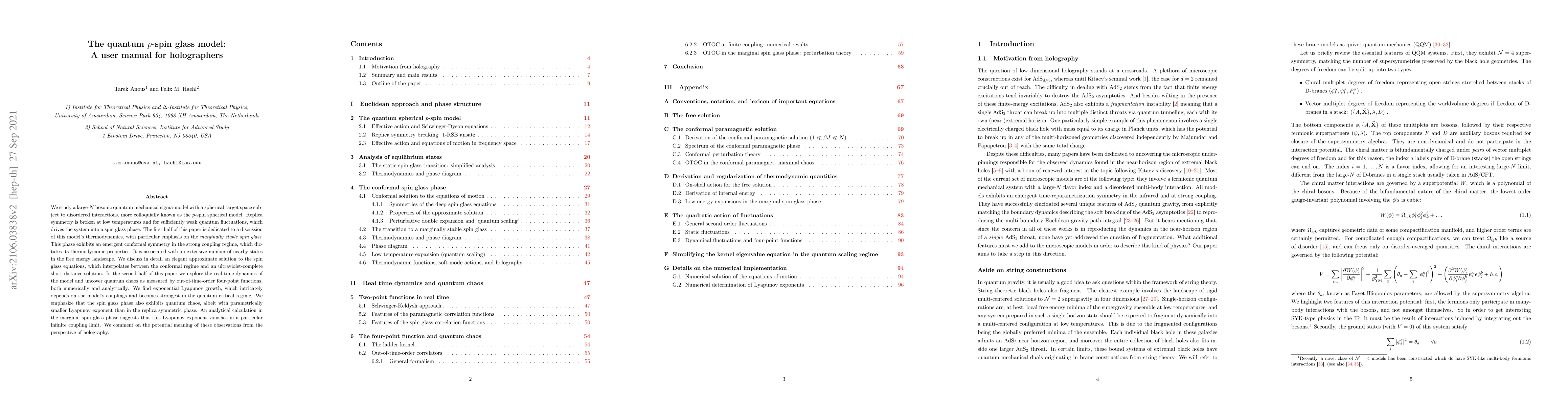 We study a large-$N$ bosonic quantum mechanical sigma-model with a spherical target space subject to disordered interactions, more colloquially known as the $p$-spin spherical model. Replica symmetry is broken at low temperatures and for sufficiently weak quantum fluctuations, which drives the system into a spin glass phase. The first half of this paper is dedicated to a discussion of this model's thermodynamics, with particular emphasis on the marginally stable spin glass. This phase exhibits an emergent conformal symmetry in the strong coupling regime, which dictates its thermodynamic properties. It is associated with an extensive number of nearby states in the free energy landscape. We discuss in detail an elegant approximate solution to the spin glass equations, which interpolates between the conformal regime and an ultraviolet-complete short distance solution. In the second half of this paper we explore the real-time dynamics of the model and uncover quantum chaos as measured by out-of-time-order four-point functions, both numerically and analytically. We find exponential Lyapunov growth, which intricately depends on the model's couplings and becomes strongest in the quantum critical regime. We emphasize that the spin glass phase also exhibits quantum chaos, albeit with parametrically smaller Lyapunov exponent than in the replica symmetric phase. An analytical calculation in the marginal spin glass phase suggests that this Lyapunov exponent vanishes in a particular infinite coupling limit. We comment on the potential meaning of these observations from the perspective of holography.