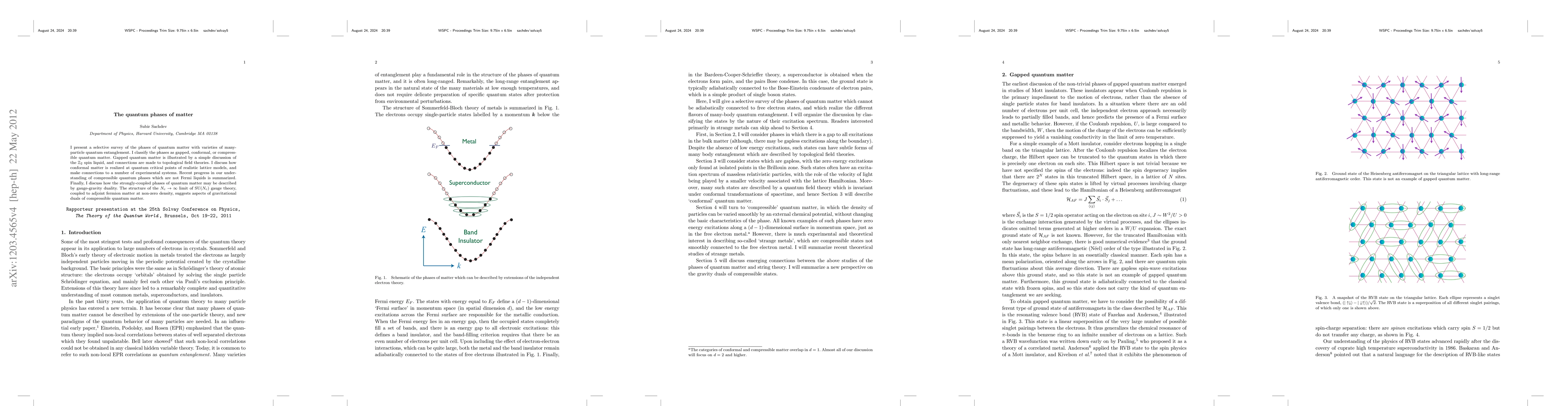 This paper surveys various quantum phases of matter, categorizing them as gapped, conformal, or compressible, with a focus on their entanglement properties. It highlights the Z_2 spin liquid and its topological field theory connections, discusses conformal matter at quantum critical points, and reviews recent advances in understanding non-Fermi liquid compressible phases, concluding with a look at gauge-gravity duality in strongly-coupled quantum systems.