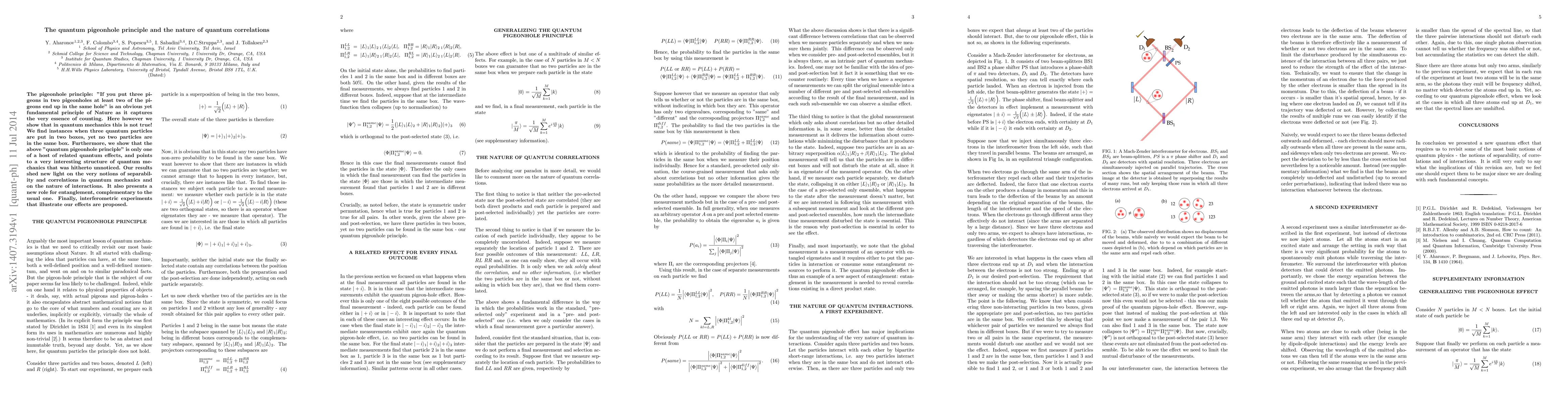 The pigeonhole principle: "If you put three pigeons in two pigeonholes at least two of the pigeons end up in the same hole" is an obvious yet fundamental principle of Nature as it captures the very essence of counting. Here however we show that in quantum mechanics this is not true! We find instances when three quantum particles are put in two boxes, yet no two particles are in the same box. Furthermore, we show that the above "quantum pigeonhole principle" is only one of a host of related quantum effects, and points to a very interesting structure of quantum mechanics that was hitherto unnoticed. Our results shed new light on the very notions of separability and correlations in quantum mechanics and on the nature of interactions. It also presents a new role for entanglement, complementary to the usual one. Finally, interferometric experiments that illustrate our effects are proposed.