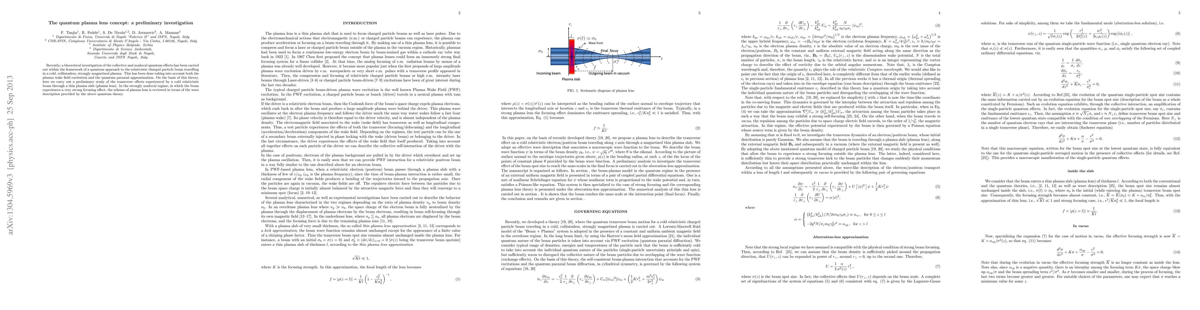 Researchers investigated the quantum plasma lens concept to understand how a relativistic beam interacts with a thin plasma slab, revealing strong focusing effects in the nonlocal regime.