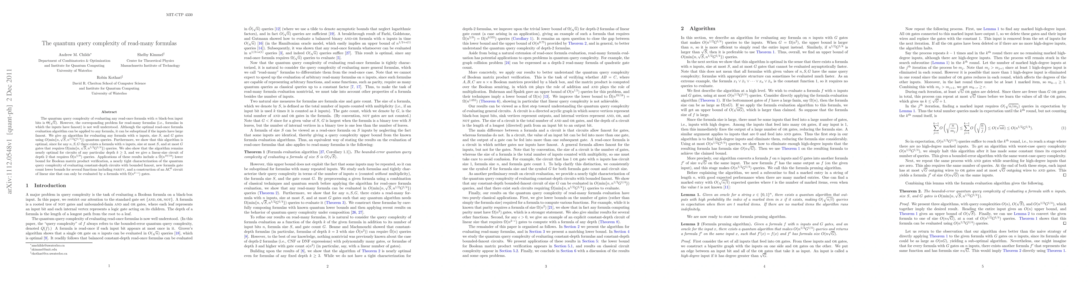 The research utilizes quantum query complexity analysis, particularly focusing on read-many formulas with n inputs, size S, and G gates. It introduces an algorithm for evaluating such formulas with O(min{n, sqrt{S}, n^{1/2} G^{1/4}}) quantum queries and proves its optimality.