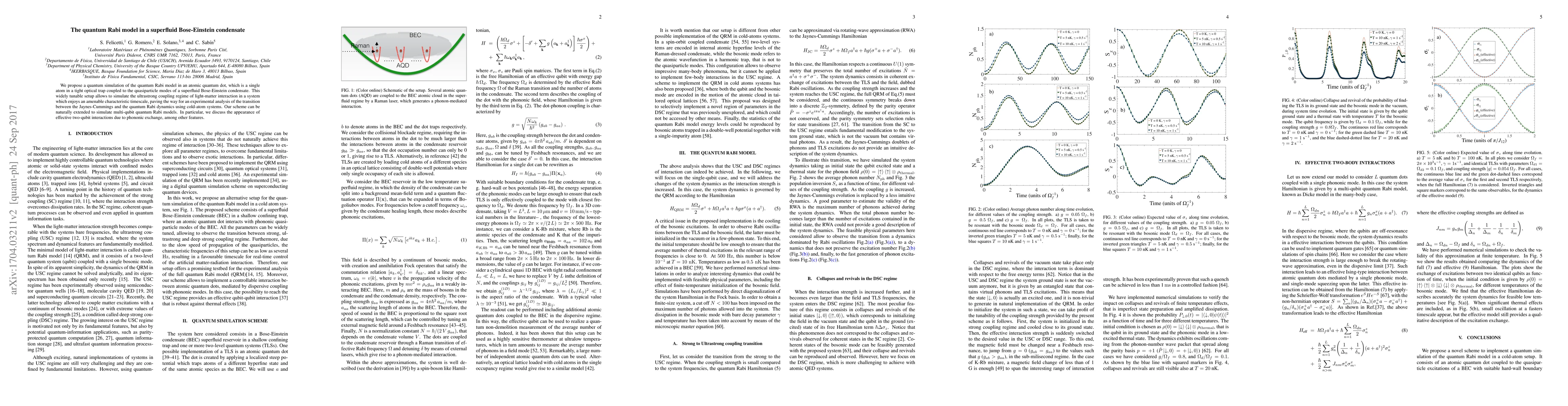This paper proposes a quantum simulation of the quantum Rabi model using a single atom in a tight optical trap coupled to a superfluid Bose-Einstein condensate, enabling the study of ultrastrong light-matter coupling and the transition between different quantum dynamics regimes. The setup also allows for simulating multi-qubit quantum Rabi models and the emergence of effective two-qubit interactions.