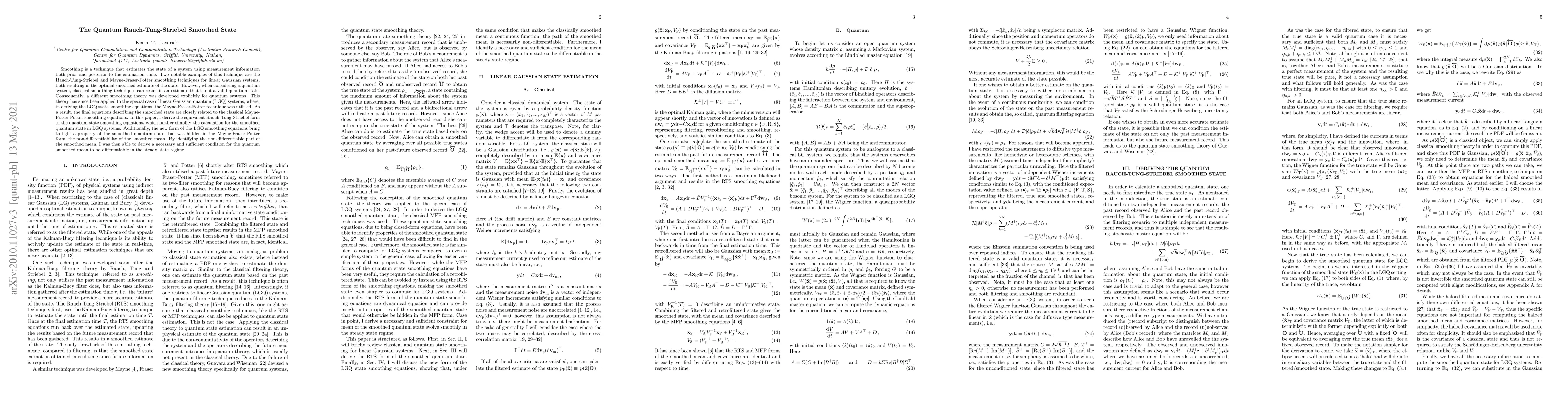Smoothing is a technique that estimates the state of a system using measurement information both prior and posterior to the estimation time. Two notable examples of this technique are the Rauch-Tung-Striebel and Mayne-Fraser-Potter smoothing techniques for linear Gaussian systems, both resulting in the optimal smoothed estimate of the state. However, when considering a quantum system, classical smoothing techniques can result in an estimate that is not a valid quantum state. Consequently, a different smoothing theory was developed explicitly for quantum systems. This theory has since been applied to the special case of linear Gaussian quantum (LGQ) systems, where, in deriving the LGQ state smoothing equations, the Mayne-Fraser-Potter technique was utilised. As a result, the final equations describing the smoothed state are closely related to the classical Mayne-Fraser-Potter smoothing equations. In this paper, I derive the equivalent Rauch-Tung-Striebel form of the quantum state smoothing equations, which further simplify the calculation for the smoothed quantum state in LGQ systems. Additionally, the new form of the LGQ smoothing equations bring to light a property of the smoothed quantum state that was hidden in the Mayne-Fraser-Potter form, the non-differentiablilty of the smoothed mean. By identifying the non-differentiable part of the smoothed mean, I was then able to derive a necessary and sufficient condition for the quantum smoothed mean to be differentiable in the steady state regime.