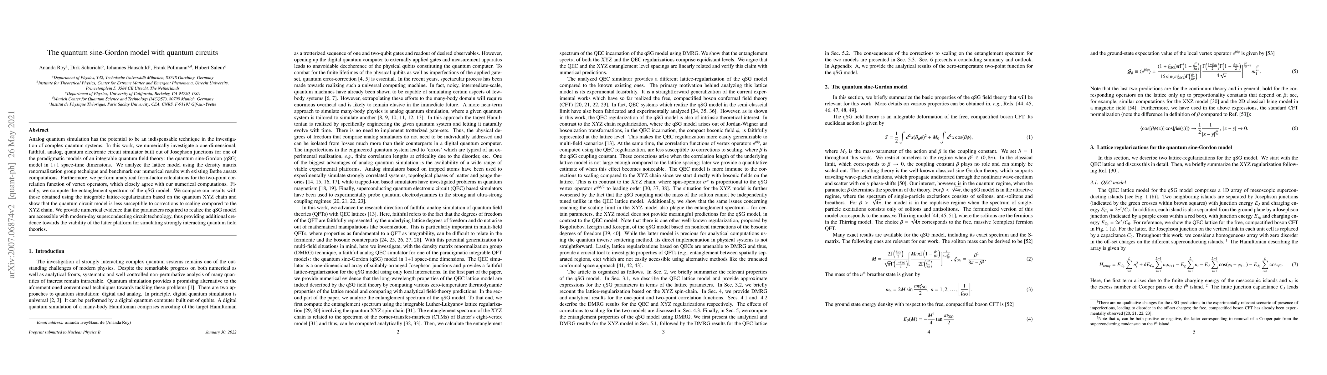 Researchers successfully simulated the quantum sine-Gordon model using a physical circuit, demonstrating its potential for studying complex quantum systems. The results show that this approach is less susceptible to corrections and can be scaled up with current technology.