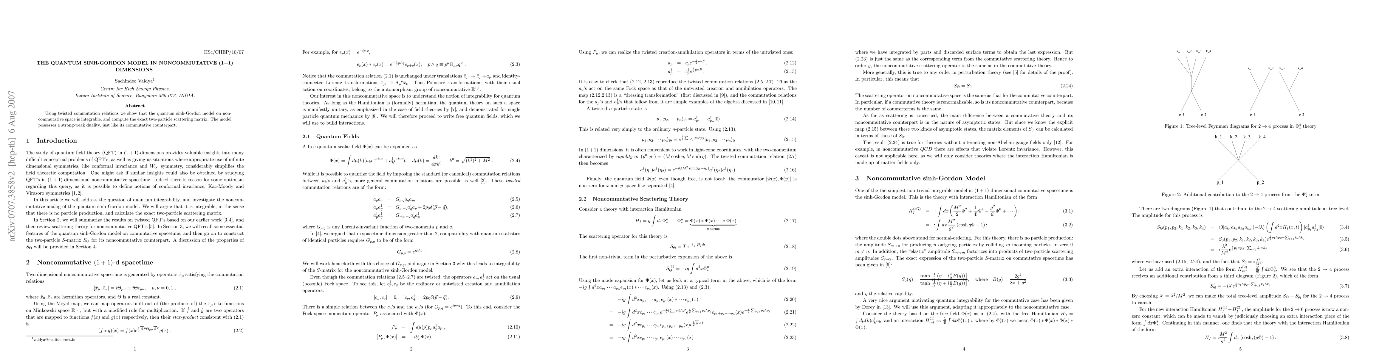 Summary: The paper demonstrates the integrability of the quantum sinh-Gordon model in noncommutative (1+1) dimensions using twisted commutation relations, and computes its exact two-particle scattering matrix, revealing a strong-weak duality similar to the commutative version.
