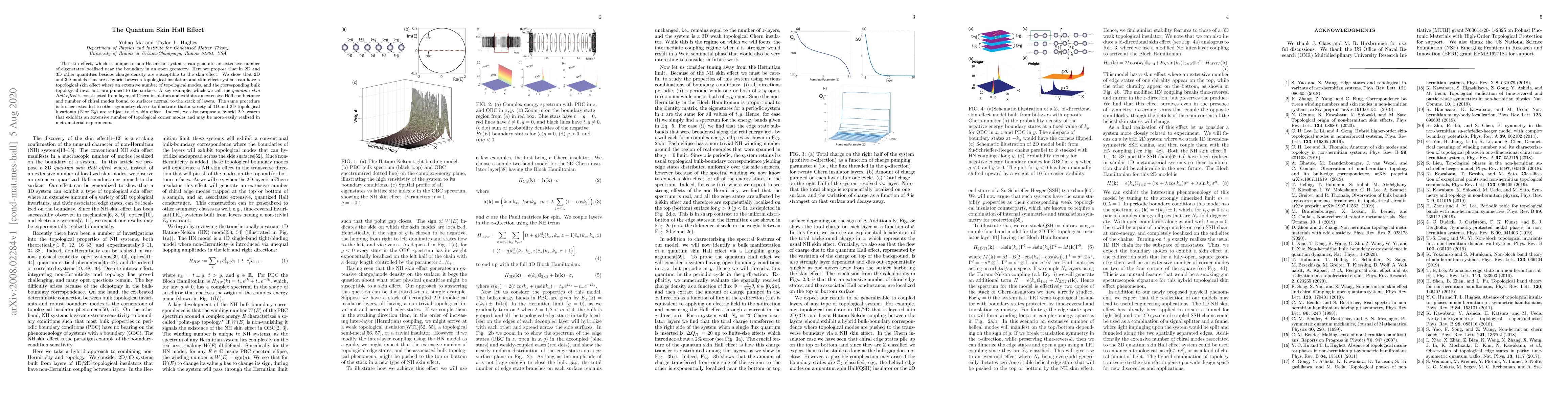 The skin effect, which is unique to non-Hermitian systems, can generate an extensive number of eigenstates localized near the boundary in an open geometry. Here we propose that in 2D and 3D other quantities besides charge density are susceptible to the skin effect. We show that 2D and 3D models that are a hybrid between topological insulators and skin-effect systems can have a topological skin effect where an extensive number of topological modes, and the corresponding bulk topological invariant, are pinned to the surface. A key example, which we call the quantum skin Hall effect is constructed from layers of Chern insulators and exhibits an extensive Hall conductance and number of chiral modes bound to surfaces normal to the stack of layers. The same procedure is further extended to other symmetry classes to illustrate that a variety of 1D and 2D topological invariants ($\mathbb{Z}$ or $\mathbb{Z}_2)$ are subject to the skin effect. Indeed, we also propose a hybrid 2D system that exhibits an extensive number of topological corner modes and may be more easily realized in meta-material experiments.