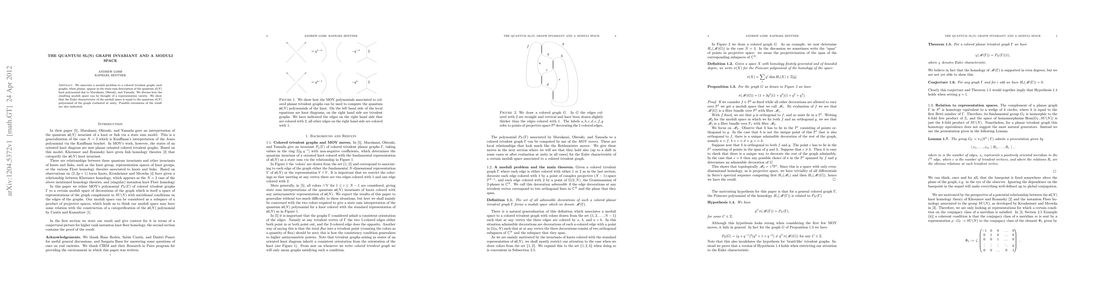 This paper associates a moduli problem to colored trivalent graphs, which appear in the state-sum description of the quantum sl(N) knot polynomial. The resulting moduli space is interpreted as a representation variety, and the Euler characteristic of this space is shown to equal the graph's quantum sl(N) polynomial evaluated at unity.