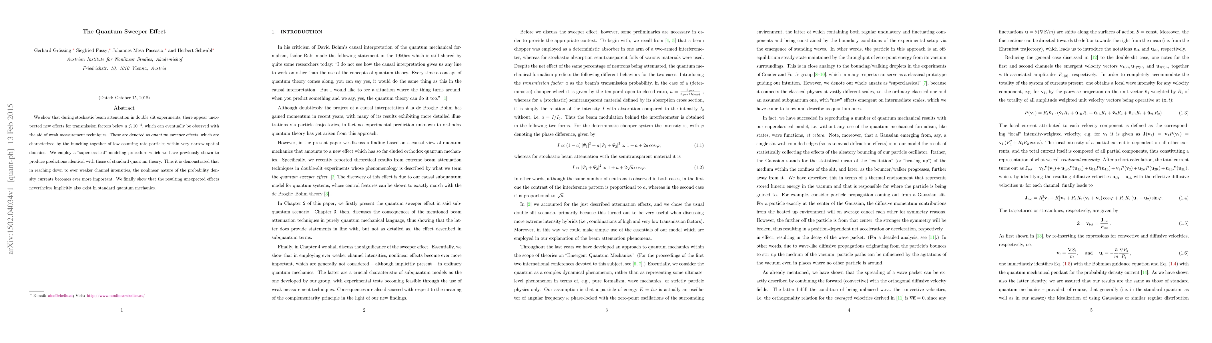 We show that during stochastic beam attenuation in double slit experiments, there appear unexpected new effects for transmission factors below $a\lesssim10^{-4}$, which can eventually be observed with the aid of weak measurement techniques. These are denoted as quantum sweeper effects, which are characterized by the bunching together of low counting rate particles within very narrow spatial domains. We employ a "superclassical" modeling procedure which we have previously shown to produce predictions identical with those of standard quantum theory. Thus it is demonstrated that in reaching down to ever weaker channel intensities, the nonlinear nature of the probability density currents becomes ever more important. We finally show that the resulting unexpected effects nevertheless implicitly also exist in standard quantum mechanics.