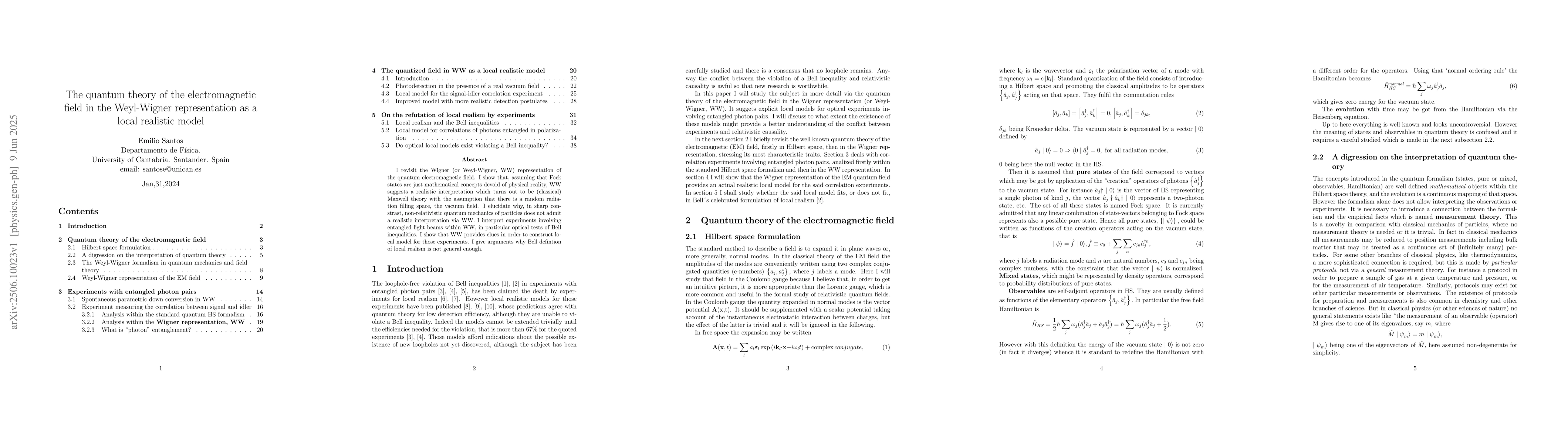 I revisit the Wigner (or Weyl-Wigner, WW) representation of the quantum electromagnetic field. I show that, assuming that Fock states are just mathematical concepts devoid of physical reality, WW suggests a realistic interpretation which turns out to be (classical) Maxwell theory with the assumption that there is a random radiation filling space, the vacuum field. I elucidate why, in sharp constrast, non-relativistic quantum mechanics of particles does not admit a realistic interpretation via WW. I interpret experiments involving entangled light beams within WW, in particular optical tests of Bell inequalities. I show that WW provides clues in order to construct local model for those experiments. I give arguments why Bell defintion of local realism is not general enough.