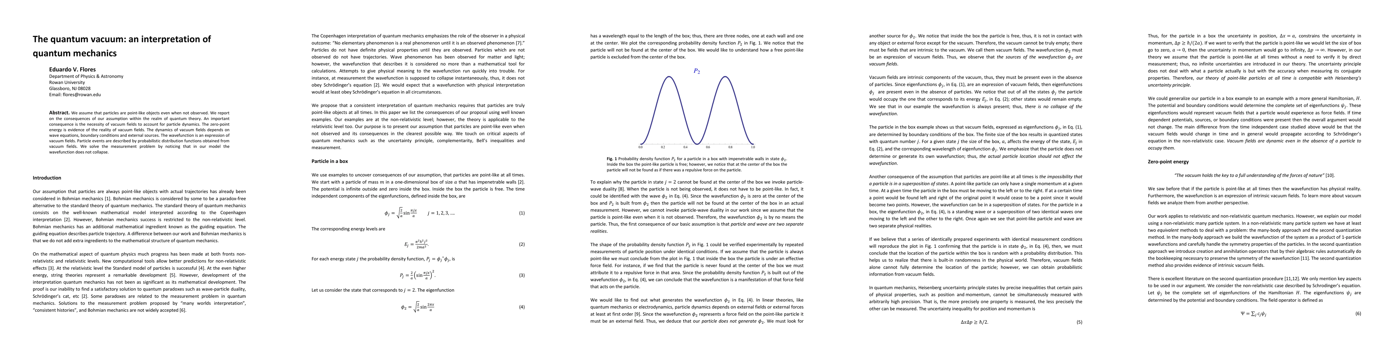 We assume that particles are point-like objects even when not observed. We report on the consequences of our assumption within the realm of quantum theory. An important consequence is the necessity of vacuum fields to account for particle dynamics. The zero-point energy is evidence of the reality of vacuum fields. The dynamics of vacuum fields depends on wave equations, boundary conditions and external sources. The wavefunction is an expression of vacuum fields. Particle events are described by probabilistic distribution functions obtained from vacuum fields. We solve the measurement problem by noticing that in our model the wavefunction does not collapse.