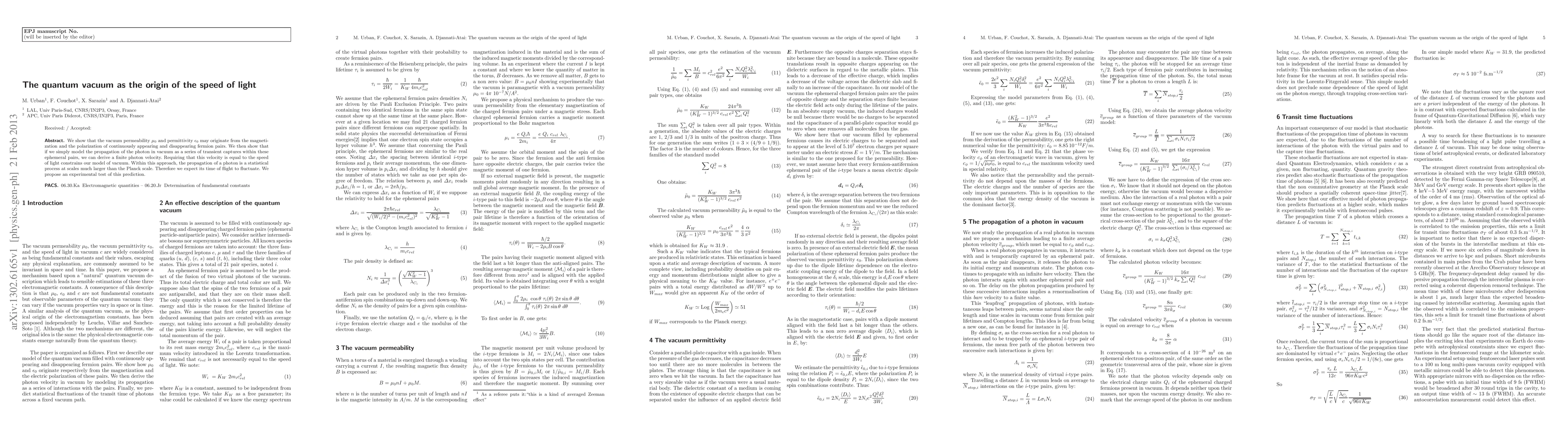 A new theory proposes that the vacuum is made up of constantly appearing and disappearing fermion pairs, which affects how photons travel through space. Experimental tests can verify if this theory's predictions about photon speed match the observed speed of light.
