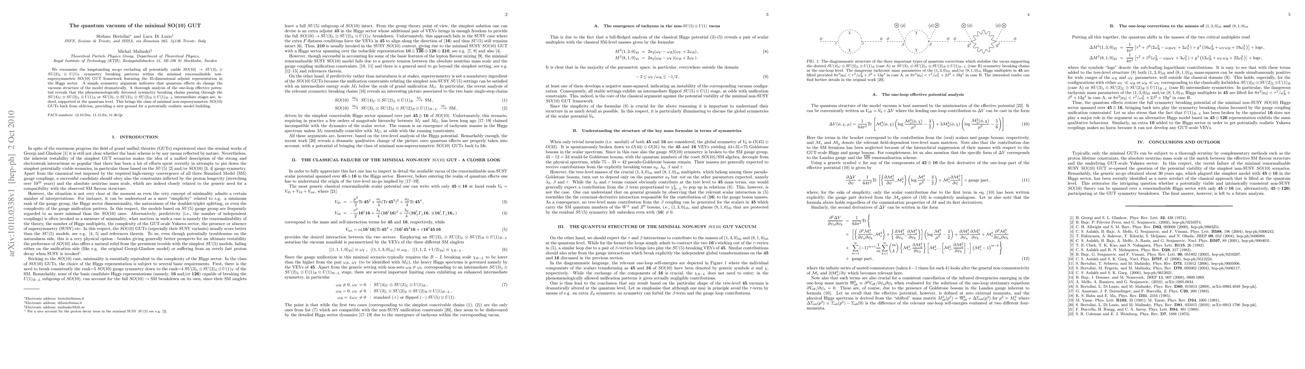 This paper revisits the viability of minimal SO(10) Grand Unified Theory (GUT) models, demonstrating that quantum effects can significantly alter the vacuum structure, thereby supporting previously excluded symmetry breaking patterns. This analysis reveals that certain GUT symmetry breaking chains are viable at the quantum level, reviving the potential for realistic model building in non-supersymmetric SO(10) GUTs.