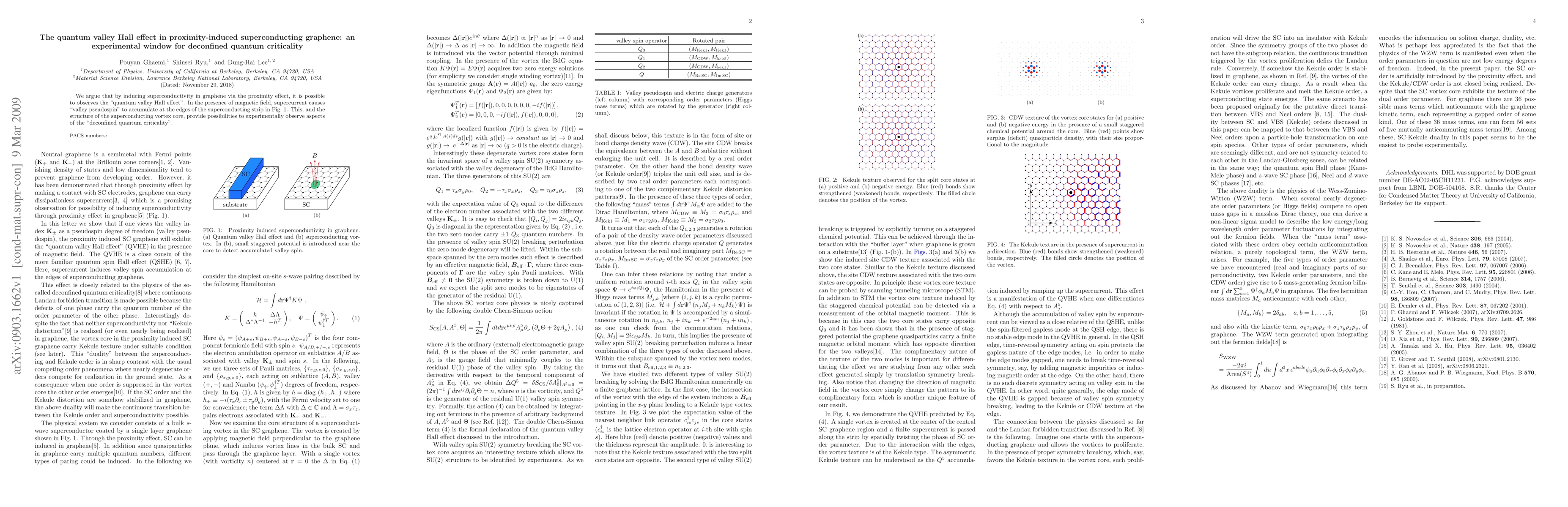 We argue that by inducing superconductivity in graphene via the proximity effect, it is possible to observes the "quantum valley Hall effect". In the presence of magnetic field, supercurrent causes "valley pseudospin" to accumulate at the edges of the superconducting strip. This, and the structure of the superconducting vortex core, provide possibilities to experimentally observe aspects of the "deconfined quantum criticality".