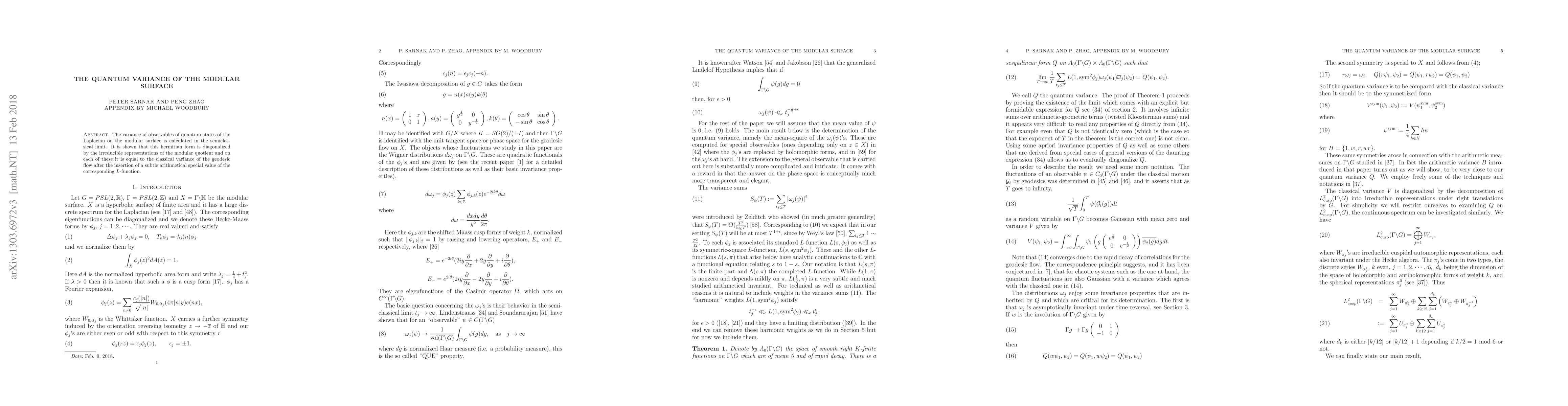 The variance of observables of quantum states of the Laplacian on the modular surface is calculated in the semiclassical limit. It is shown that this hermitian form is diagonalized by the irreducible representations of the modular quotient and on each of these it is equal to the classical variance of the geodesic flow after the insertion of a subtle arithmetical special value of the corresponding $L$-function.