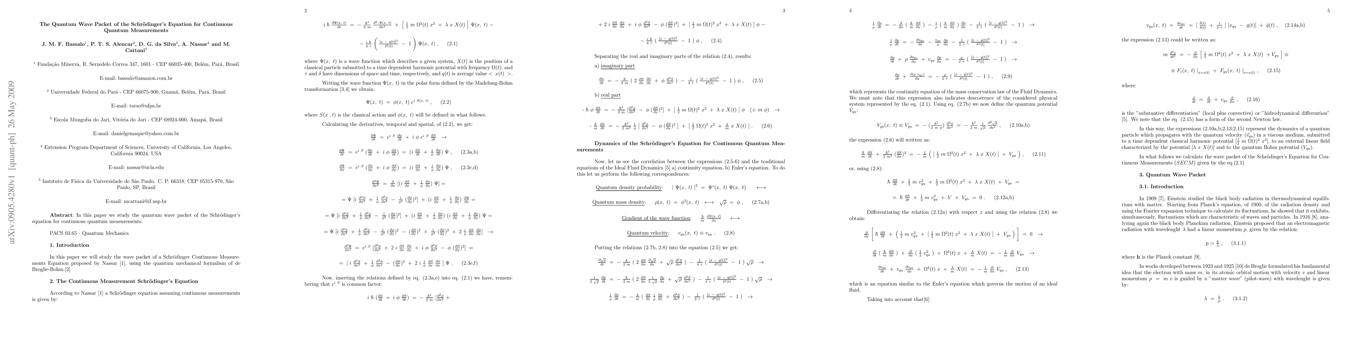 This paper explores the quantum wave packet of the Schrodinger equation for continuous measurements, shedding light on how quantum systems interact with measurement processes.