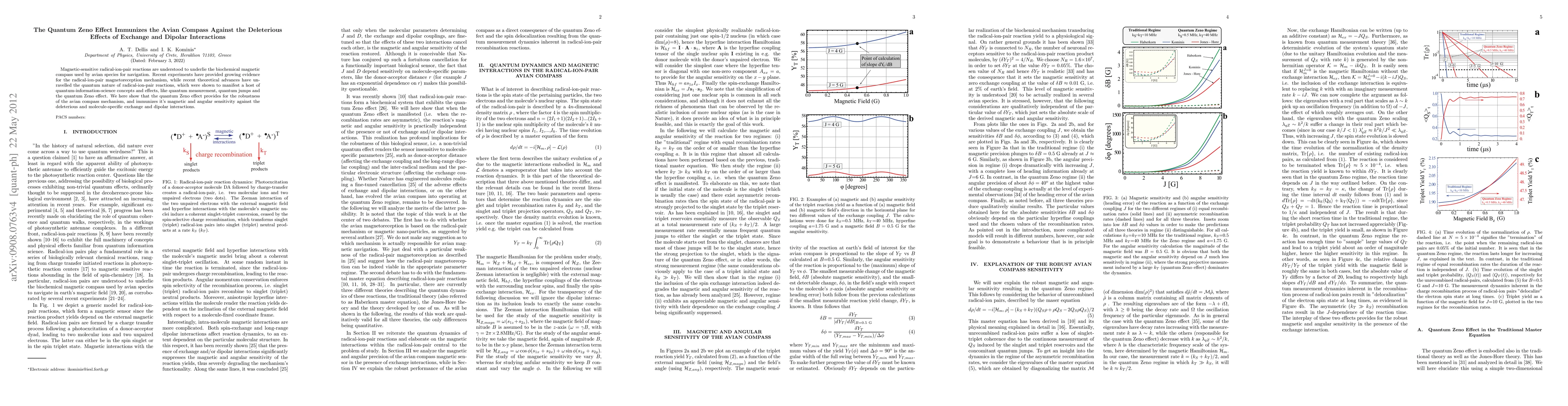 This paper demonstrates that the quantum Zeno effect enhances the robustness of avian magnetic compass mechanisms, protecting them from the adverse impacts of exchange and dipolar interactions. Theoretical advances reveal that quantum-information-science concepts like the quantum Zeno effect play a crucial role in maintaining the sensitivity of avian magnetoreception.