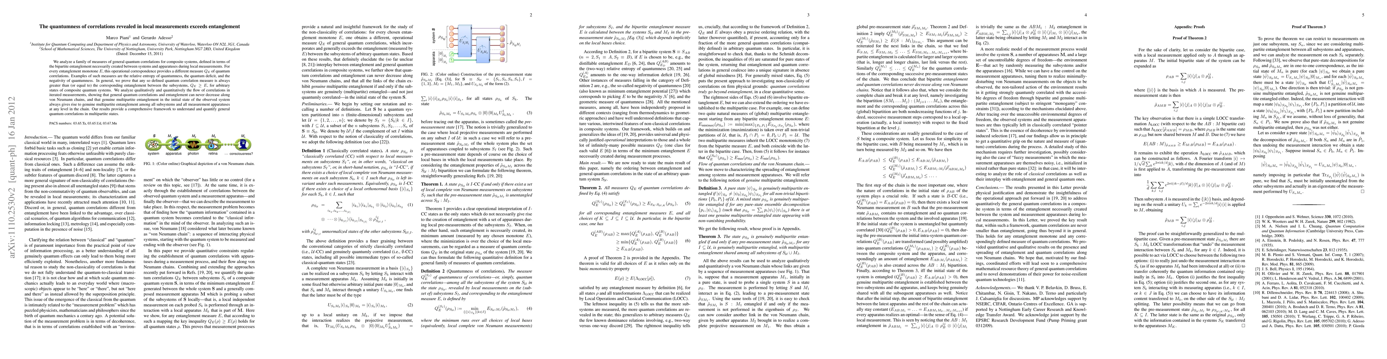 This paper establishes that measures of general quantum correlations, defined through local measurements, always exceed or equal the corresponding entanglement measures, providing a comprehensive framework for understanding and quantifying these correlations in multipartite quantum systems. The study also shows that multipartite entanglement in the initial state leads to entanglement in all subsystems and measurement apparatuses.