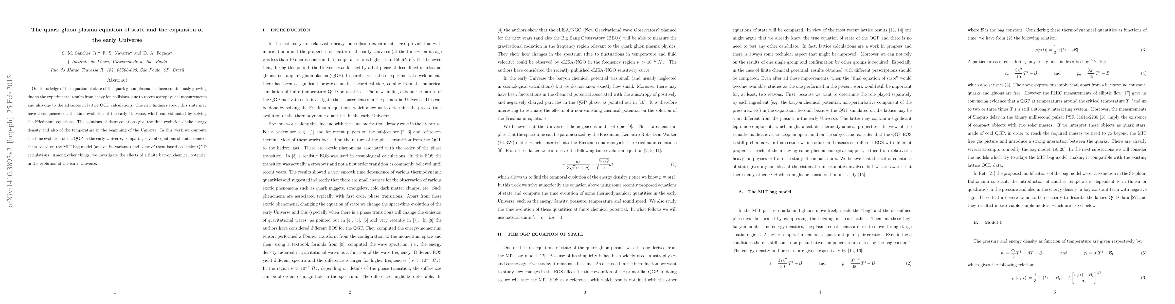 This paper investigates the equation of state for quark gluon plasma (QGP) derived from heavy ion collision experiments, astrophysical measurements, and lattice QCD calculations, and explores its implications on the early Universe's expansion using the Friedmann equations. It compares various QGP models, including MIT bag models and lattice QCD, to study the effects of a finite baryon chemical potential on the Universe's initial thermal and energy density evolution.
