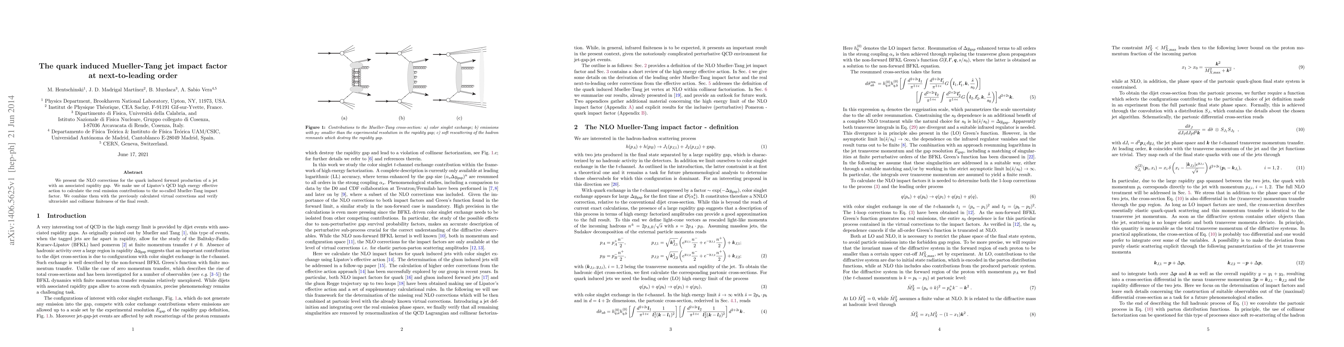 We present the NLO corrections for the quark induced forward production of a jet with an associated rapidity gap. We make use of Lipatov's QCD high energy effective action to calculate the real emission contributions to the so-called Mueller-Tang impact factor. We combine them with the previously calculated virtual corrections and verify ultraviolet and collinear finiteness of the final result.