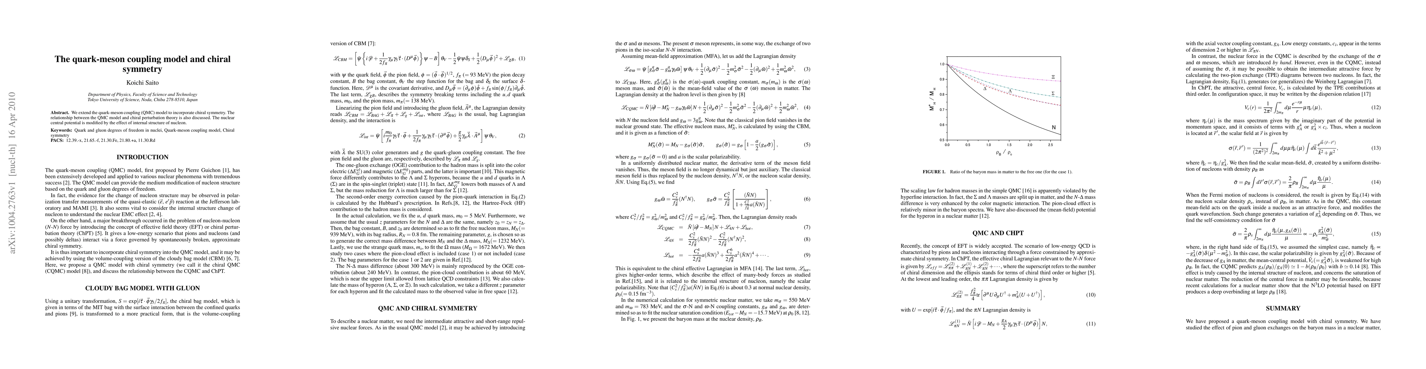 The research extends the Quark-Meson Coupling (QMC) model to incorporate chiral symmetry, discussing its relationship with Chiral Perturbation Theory (ChPT). It modifies the nuclear central potential by considering the internal structure of the nucleon.