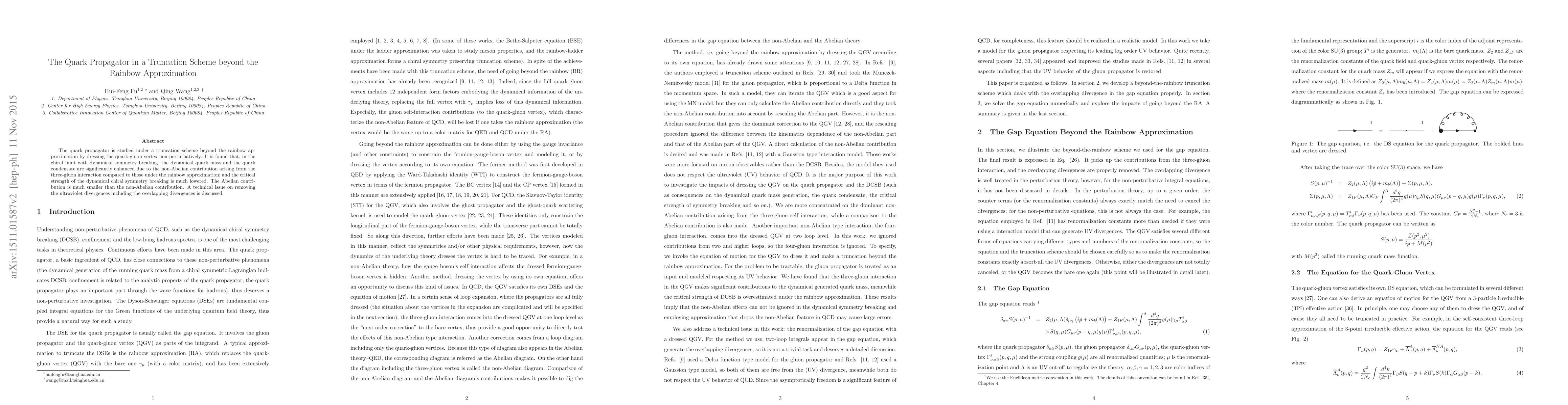 This paper investigates the quark propagator using a truncation scheme beyond the rainbow approximation, revealing significant enhancements in the dynamical quark mass and quark condensate due to non-Abelian contributions from three-gluon interactions. The study finds that the critical strength for chiral symmetry breaking is reduced, with the Abelian contribution being minor compared to the non-Abelian one. The paper also addresses technical challenges in managing ultraviolet divergences.