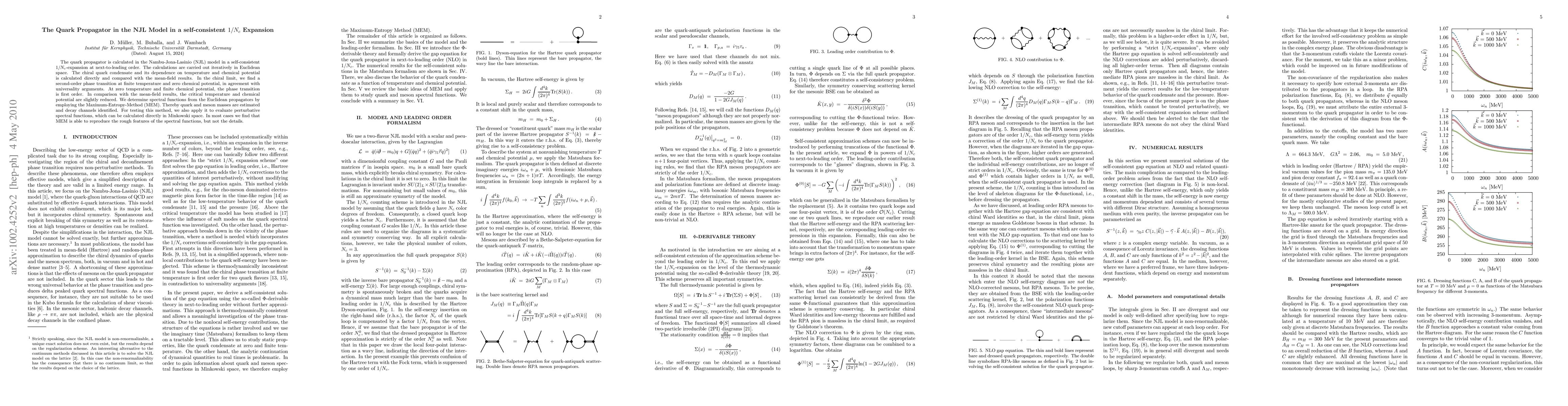 Researchers calculated the quark propagator in the NJL model using a self-consistent 1/Nc expansion and found a second-order phase transition at finite temperature and zero chemical potential, but first order at zero temperature and finite chemical potential.
