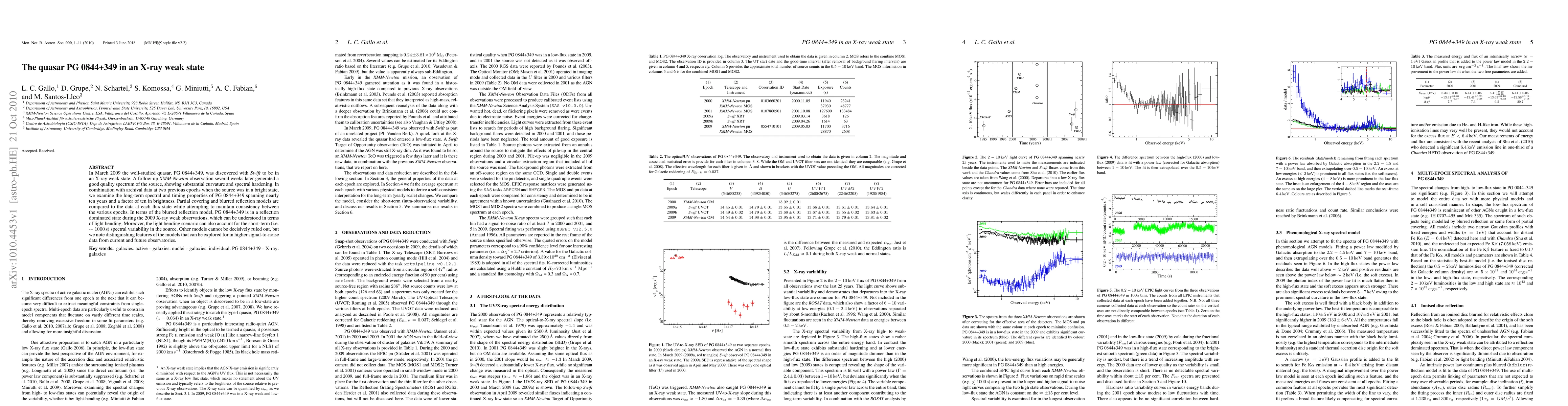 The quasar PG 0844+349 was observed in an X-ray weak state in 2009, with subsequent XMM-Newton data showing spectral hardening and curvature. Analysis of long-term data suggests light bending, or blurred reflection, as the most consistent model for the observed X-ray variability.