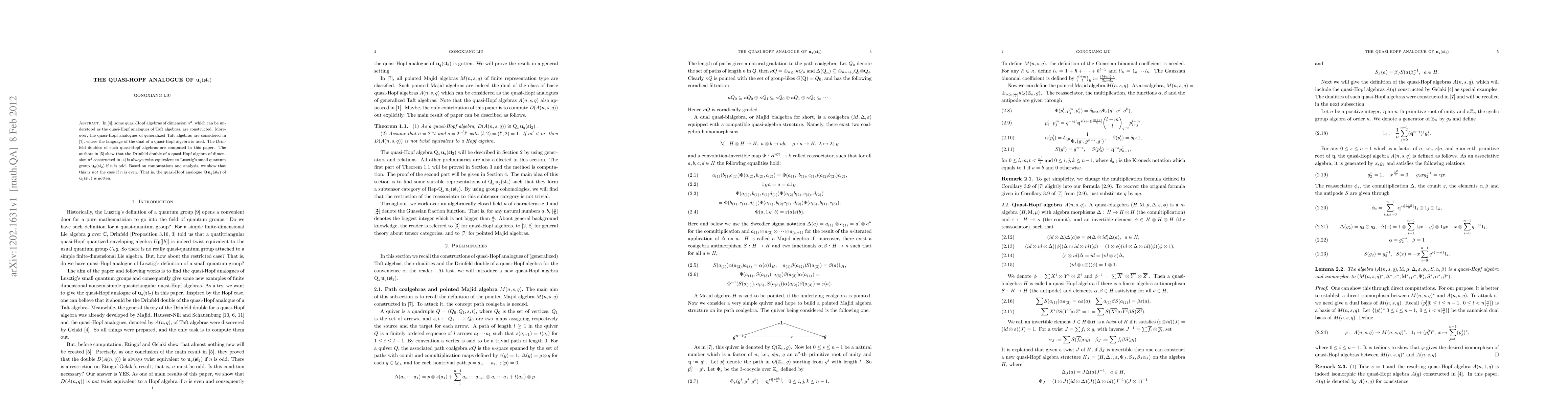 In [4], some quasi-Hopf algebras of dimension $n^{3}$, which can be understood as the quasi-Hopf analogues of Taft algebras, are constructed. Moreover, the quasi-Hopf analogues of generalized Taft algebras are considered in [7], where the language of the dual of a quasi-Hopf algebra is used. The Drinfeld doubles of such quasi-Hopf algebras are computed in this paper. The authors in [5] shew that the Drinfeld double of a quasi-Hopf algebra of dimension $n^{3}$ constructed in [4] is always twist equivalent to Lusztig's small quantum group $u_q(sl_2)$ if $n$ is odd. Based on computations and analysis, we show that this is \emph{not} the case if $n$ is even. That is, the quasi-Hopf analogue $Qu_q(sl_2)$ of $u_q(sl_2)$ is gotten.