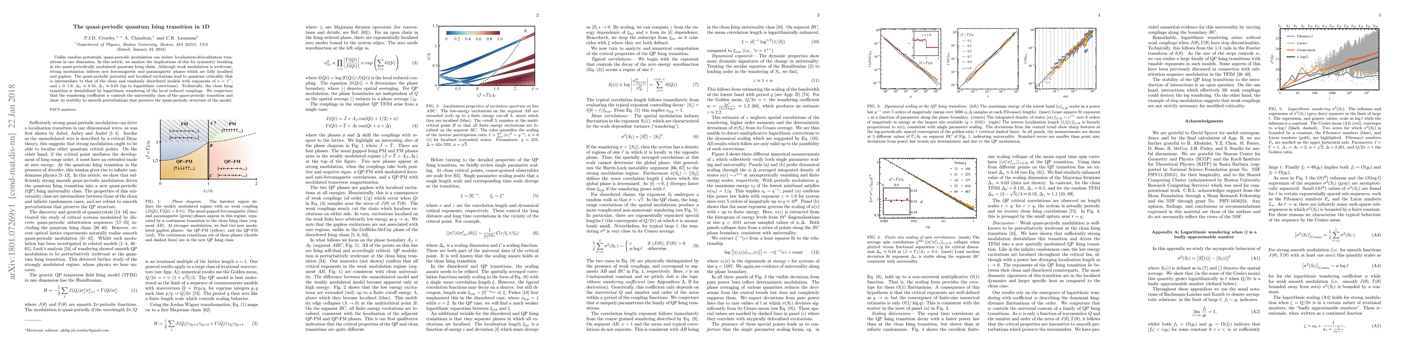 A study on a 1D quantum Ising chain with quasi-periodic modulation reveals new ferromagnetic and paramagnetic phases that are gapless and localized. The transition is intermediate between the clean and randomly disordered models.