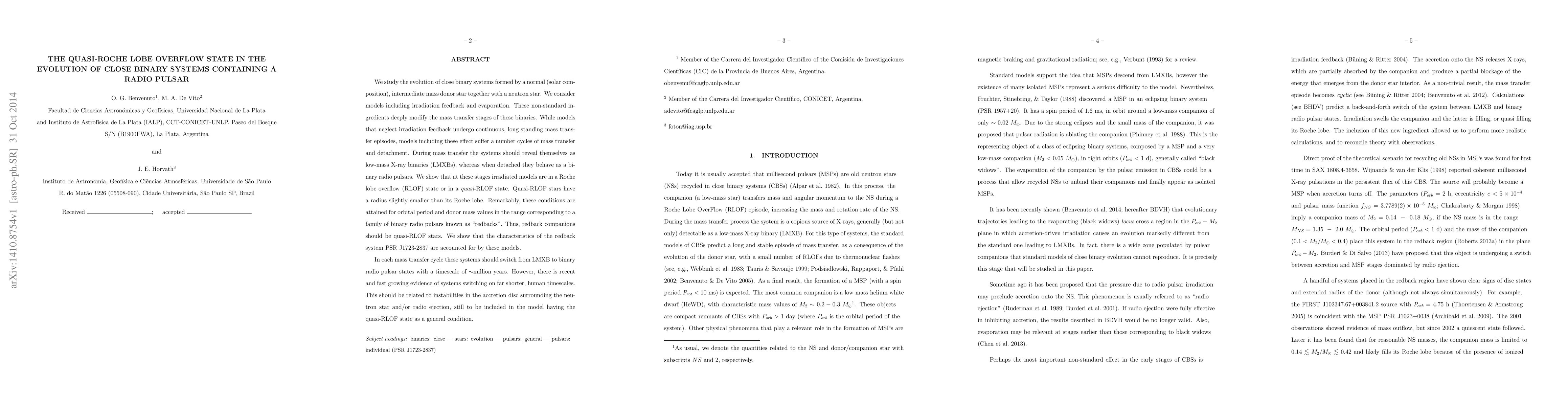 We study the evolution of close binary systems formed by a normal (solar composition), intermediate mass donor star together with a neutron star. We consider models including irradiation feedback and evaporation. These non-standard ingredients deeply modify the mass transfer stages of these binaries. While models that neglect irradiation feedback undergo continuous, long standing mass transfer episodes, models including these effect suffer a number cycles of mass transfer and detachment. During mass transfer the systems should reveal themselves as low-mass X-ray binaries (LMXBs), whereas when detached they behave as a binary radio pulsars. We show that at these stages irradiated models are in a Roche lobe overflow (RLOF) state or in a quasi-RLOF state. Quasi-RLOF stars have a radius slightly smaller than its Roche lobe. Remarkably, these conditions are attained for orbital period and donor mass values in the range corresponding to a family of binary radio pulsars known as "redbacks". Thus, redback companions should be quasi-RLOF stars. We show that the characteristics of the redback system PSR J1723-2837 are accounted for by these models. In each mass transfer cycle these systems should switch from LMXB to binary radio pulsar states with a timescale of \sim million years. However, there is recent and fast growing evidence of systems switching on far shorter, human timescales. This should be related to instabilities in the accretion disc surrounding the neutron star and/or radio ejection, still to be included in the model having the quasi-RLOF state as a general condition.