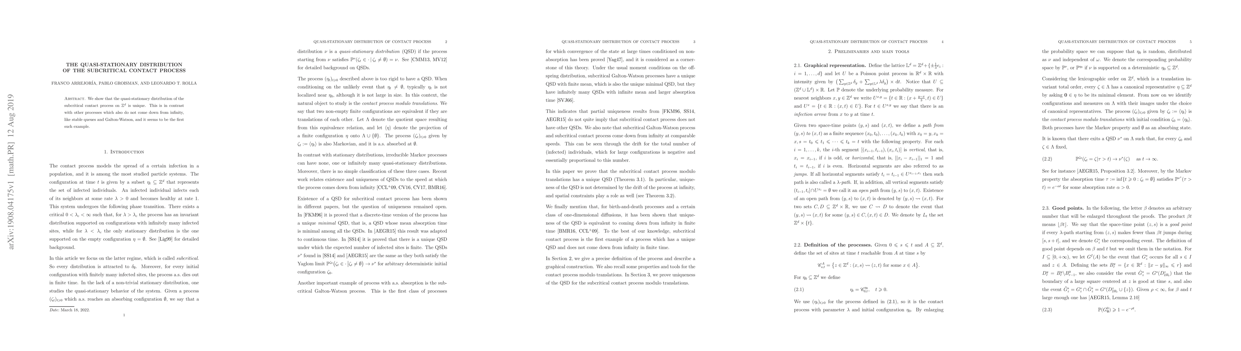 Researchers show that the subcritical contact process on $ackslash$Z^d$ has a unique quasi-stationary distribution, unlike other non-decaying processes like stable queues and Galton-Watson.