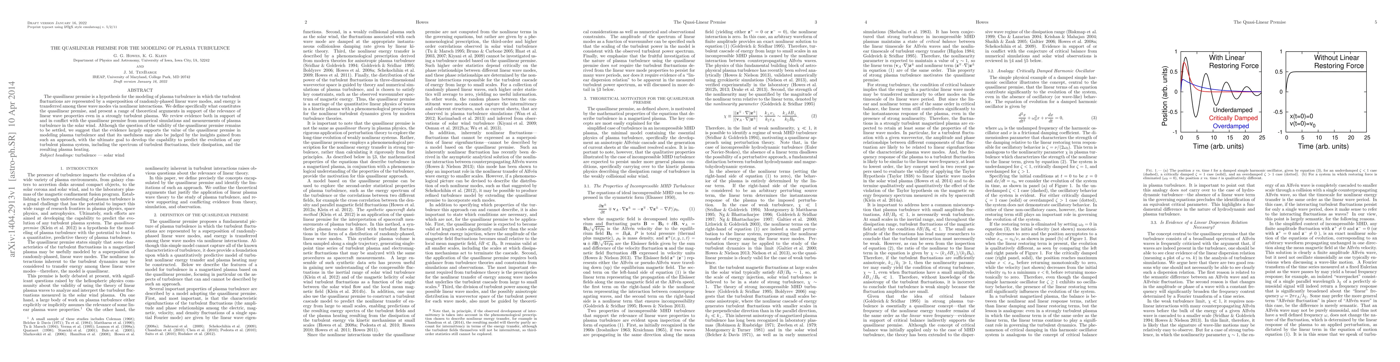 The quasilinear premise models plasma turbulence by considering turbulent fluctuations as a superposition of linear wave modes, with energy transfer via nonlinear interactions. While the premise's validity is still debated, it offers valuable insights and potential for predicting turbulent plasma evolution.