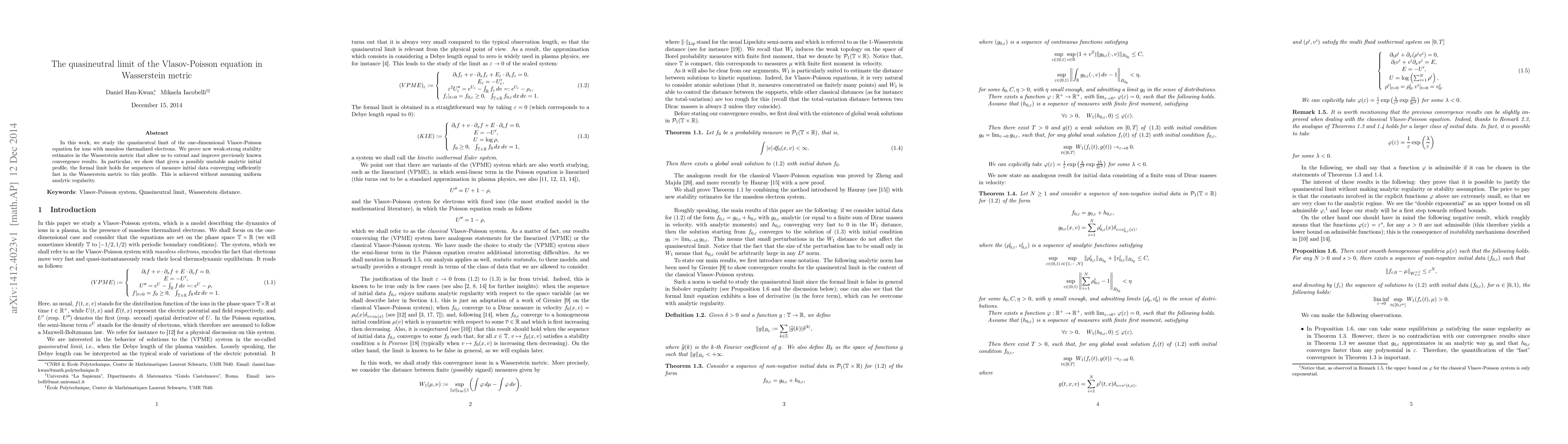This paper investigates the quasineutral limit of the one-dimensional Vlasov-Poisson equation with massless thermalized electrons, proving new weak-strong stability estimates in the Wasserstein metric to extend previous convergence results. It demonstrates the formal limit holds for initial data sequences converging rapidly in the Wasserstein metric, without requiring uniform analytic regularity.