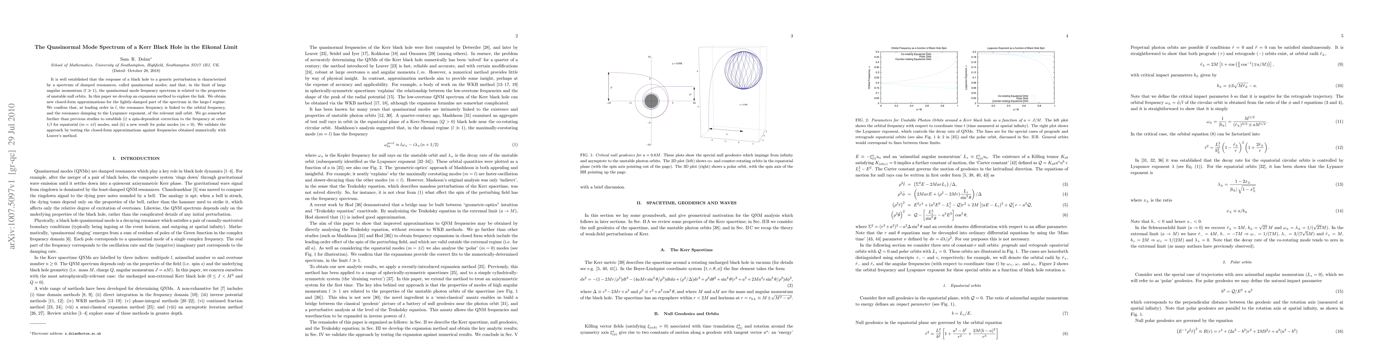It is well established that the response of a black hole to a generic perturbation is characterized by a spectrum of damped resonances, called quasinormal modes; and that, in the limit of large angular momentum ($l \gg 1$), the quasinormal mode frequency spectrum is related to the properties of unstable null orbits. In this paper we develop an expansion method to explore the link. We obtain new closed-form approximations for the lightly-damped part of the spectrum in the large-$l$ regime. We confirm that, at leading order in $l$, the resonance frequency is linked to the orbital frequency, and the resonance damping to the Lyapunov exponent, of the relevant null orbit. We go somewhat further than previous studies to establish (i) a spin-dependent correction to the frequency at order $1 / l$ for equatorial ($m = \pm l$) modes, and (ii) a new result for polar modes ($m = 0$). We validate the approach by testing the closed-form approximations against frequencies obtained numerically with Leaver's method.