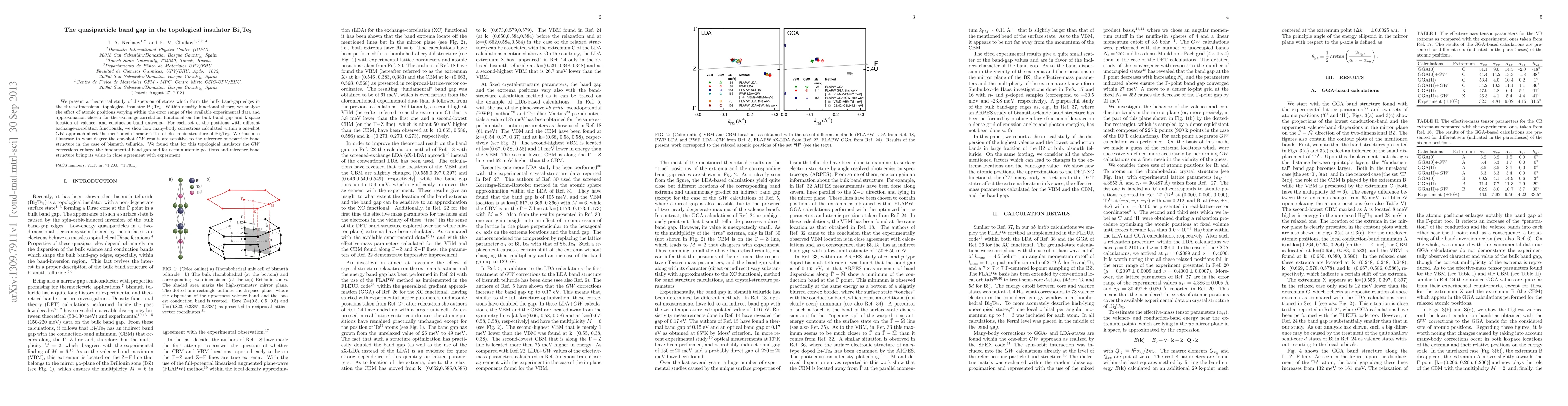 The paper presents a detailed theoretical analysis of the quasiparticle band gap in Bi2Te3 using DFT and GW approximation, highlighting the sensitivity of one-shot GW results to the reference one-particle band structure.